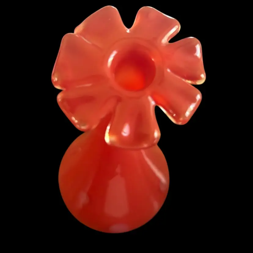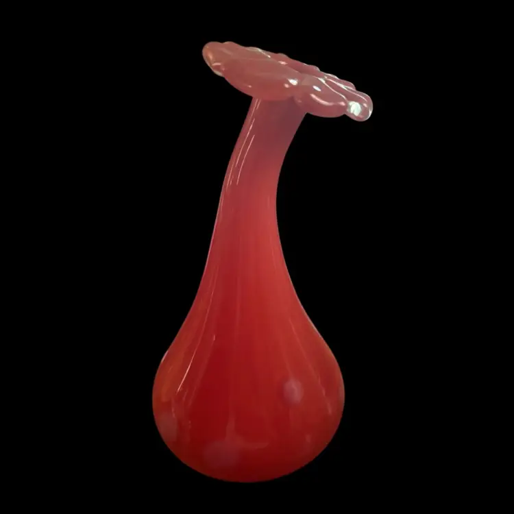Whimsical artisan signed flower glass vase. No chips or cracks 3x6.5”