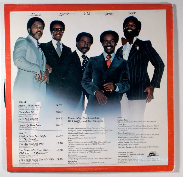Open Up Your Love, released in 1977 by The Whispers, marked their final album on Soul Train Records before transitioning to SOLAR Records, a pivotal shift that boosted their mainstream success. The album reached No. 23 on the Billboard Soul Albums chart, showcasing the group's signature smooth R&B and disco-infused sound. It features a notable cover of Bread's Make It With You, which became a charting hit, blending disco and soul elements effectively. Another standout single, I'm Gonna Make You My Wife, gained historical significance for its inclusion in the 1995 film Waiting to Exhale, though it was not part of the official soundtrack. The album's lush harmonies and arrangements, including tracks like Chocolate Girl and You Are No. 1, solidified The Whispers' reputation as a leading R&B act of the 1970s.