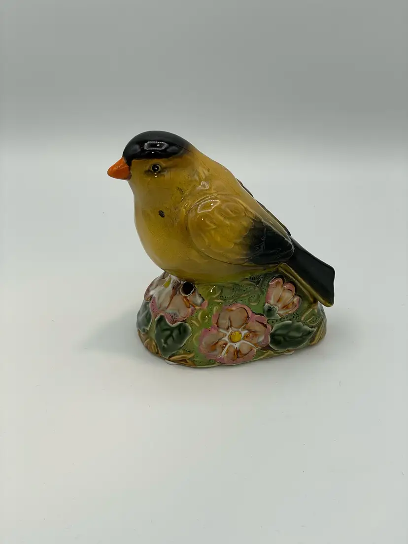 Whistling Ceramic Bird That Whistles. Has On/Off Switch. American Gold Finch? No Chips/Cracks. 4 1/2" Tall X 4 1/2" W