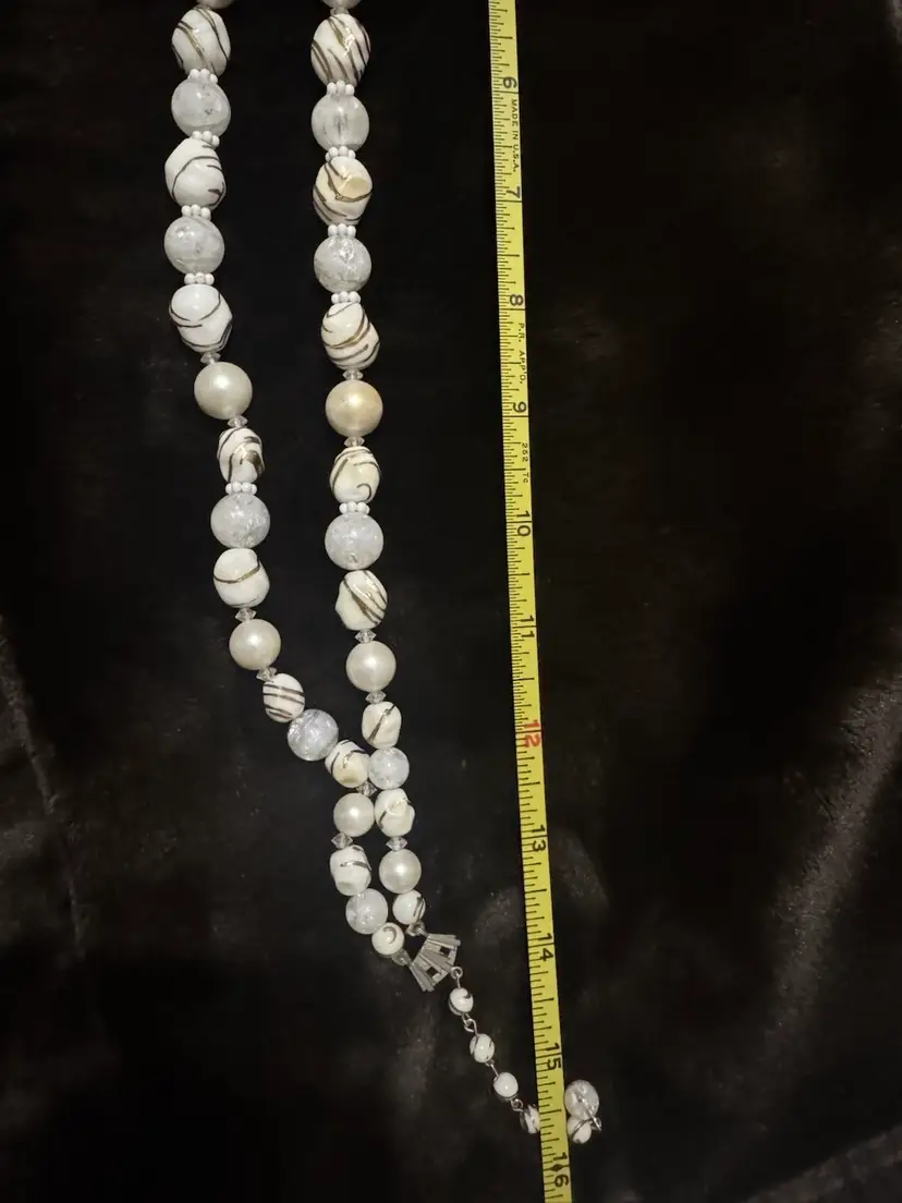 White & Gold Scribble Beads Shiny Gold Tone Beads