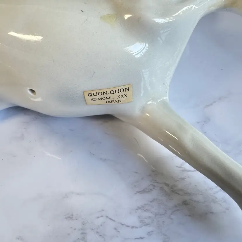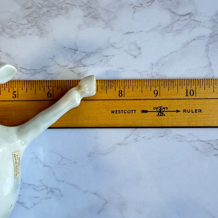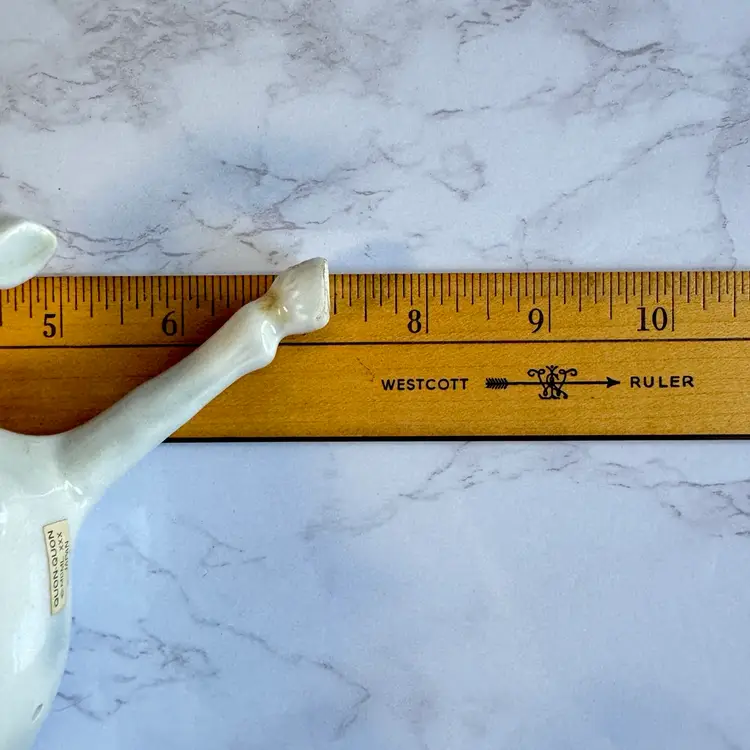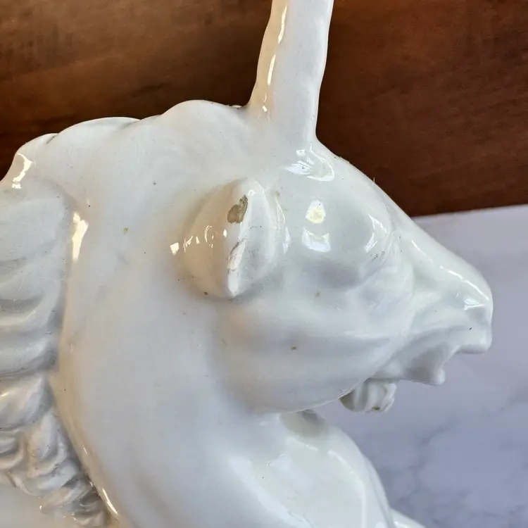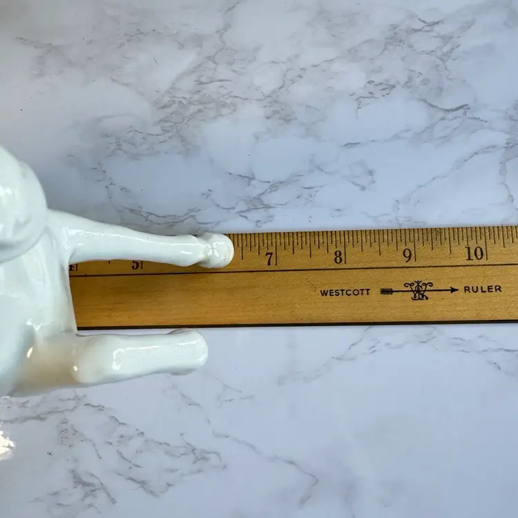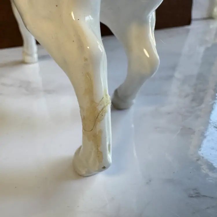 Broken, repaired leg and multiple small chips & flaws. Displays well, nevertheless. About 6-1/2” x 7-1/4”