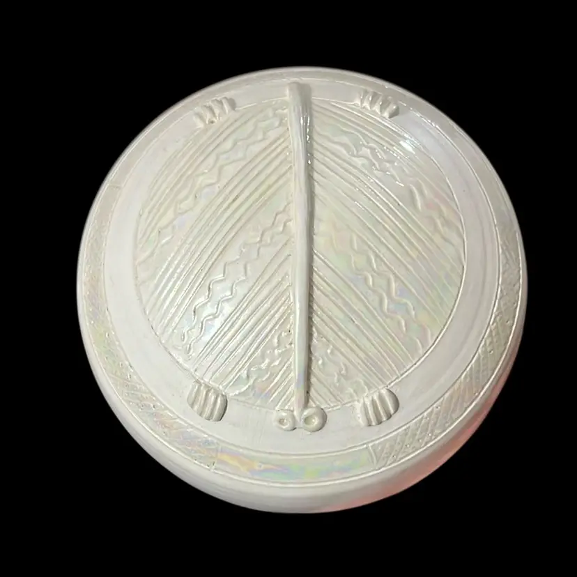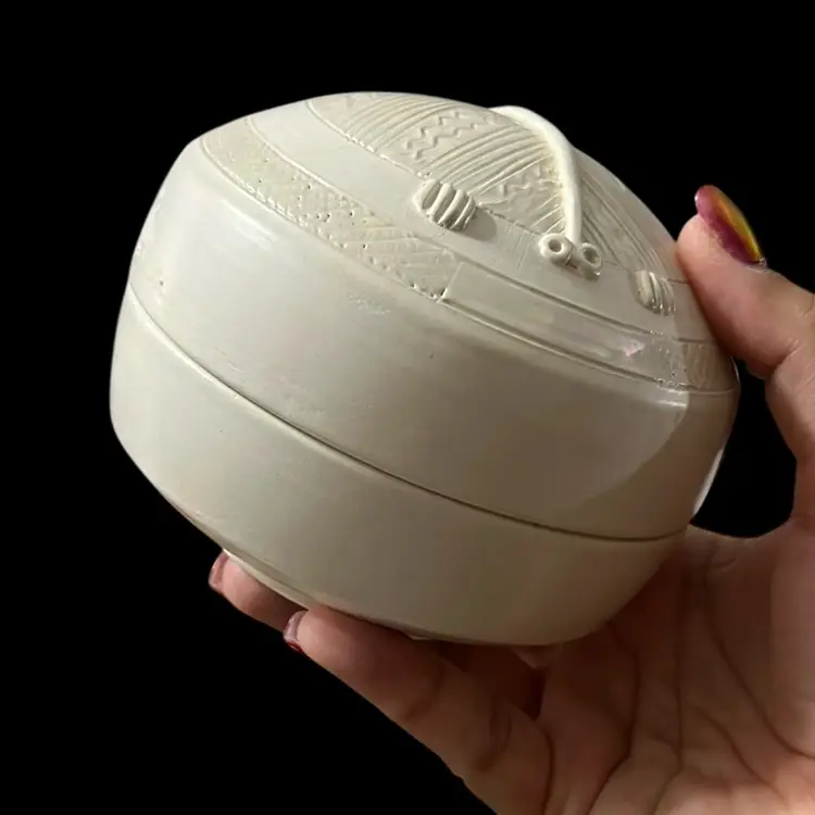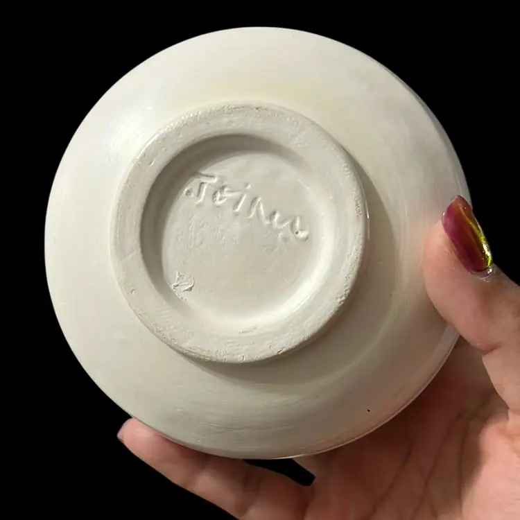 slight wear on sides not much. no chips or cracks. Signed on bottom. 3” tall, 4.5” wide