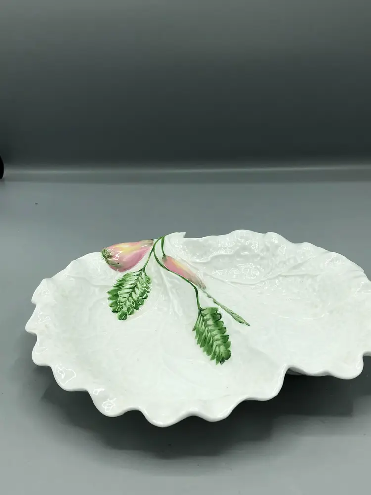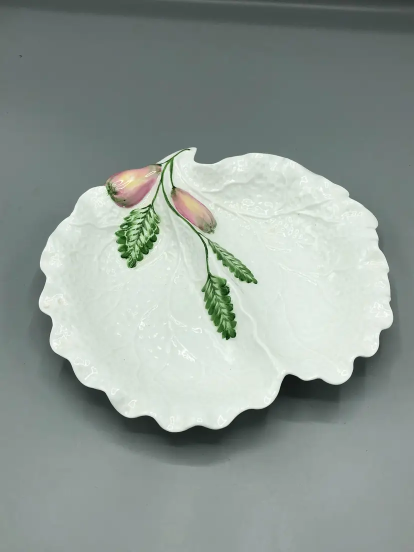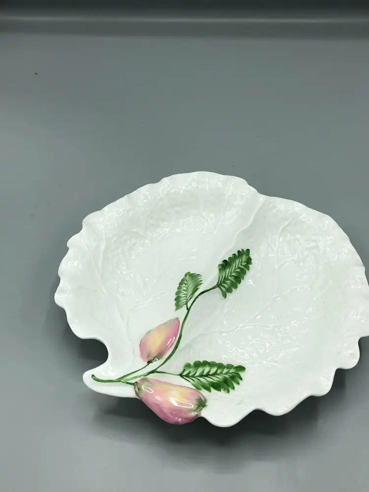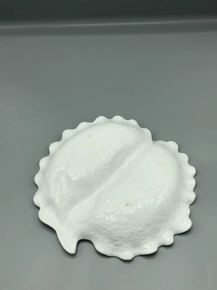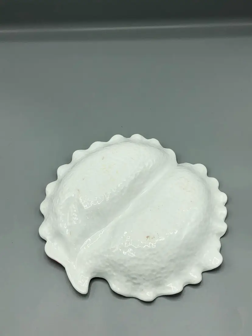 White divided Apple design that would look amazing on any table. the colors on the leaf dish is lovely. This has no damage on the dish.