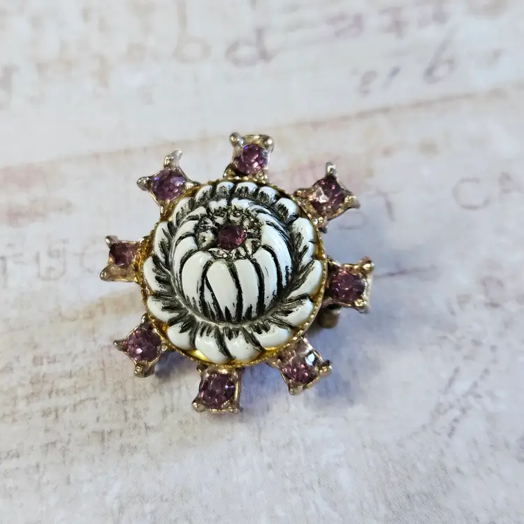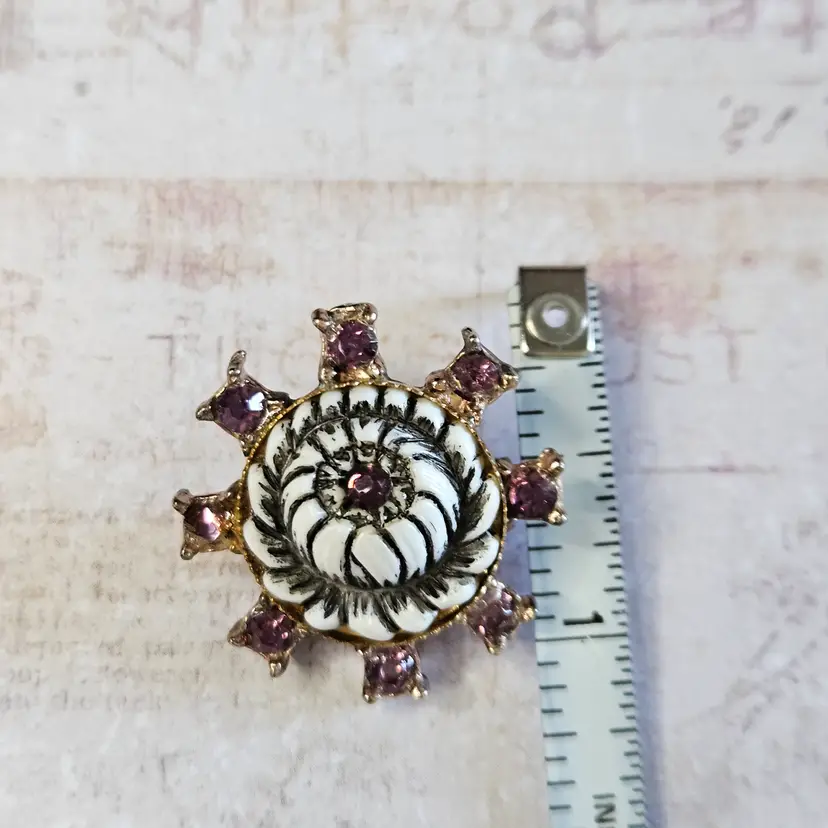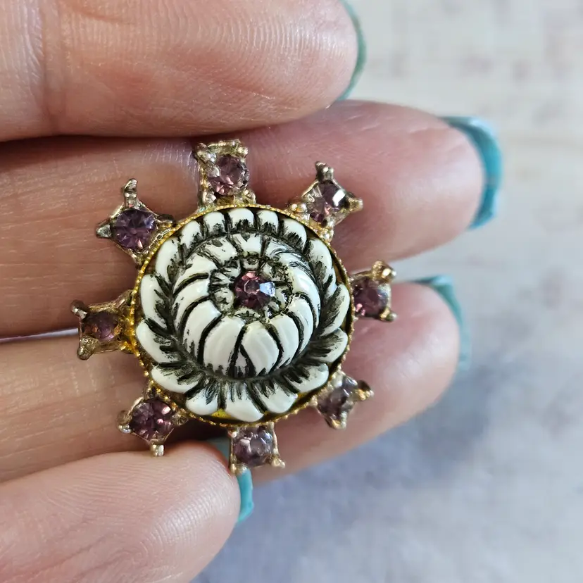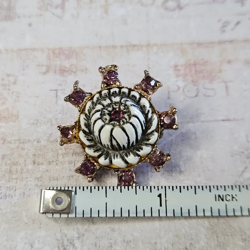 Approx 1" Unusual color stones. Beautiful white flower.