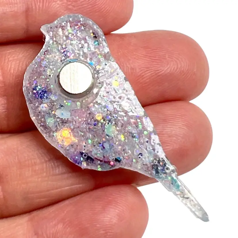 Handmade by me 🫶 White Glitter Bird . Handmade With Resin and Sparkling Glitters. Strong magnet on back. 1-3/4” x 3/4” x 1/8”