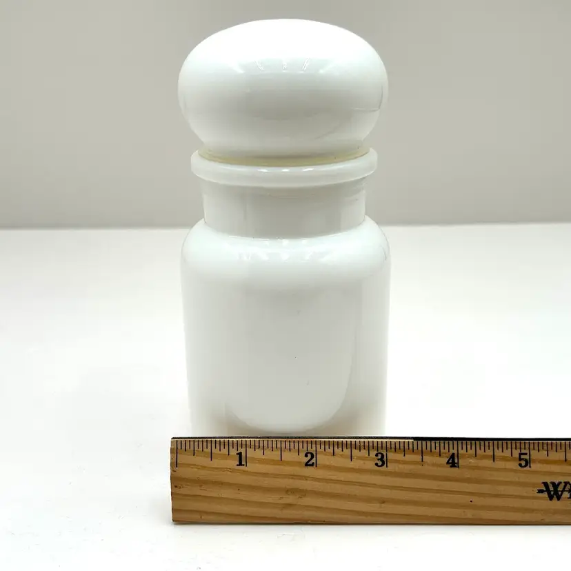 As shown Almost 7 inches tall and 3 inches wide No chips or cracks. Seals well