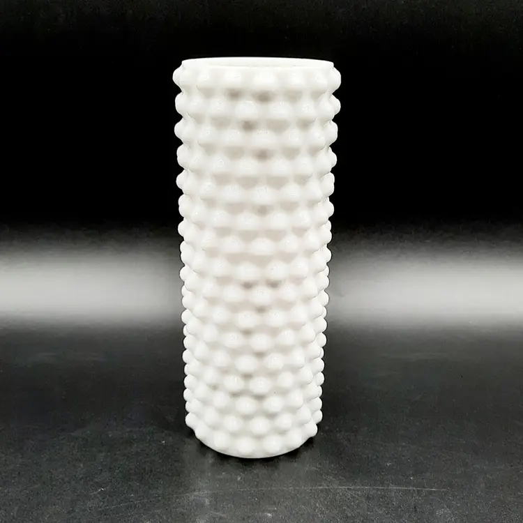 This sweet little vase is 5 1/2"H x 2 1/4"W, great condition - top rim is rough and a bit jagged on inner edge (interior is glazed and smooth)