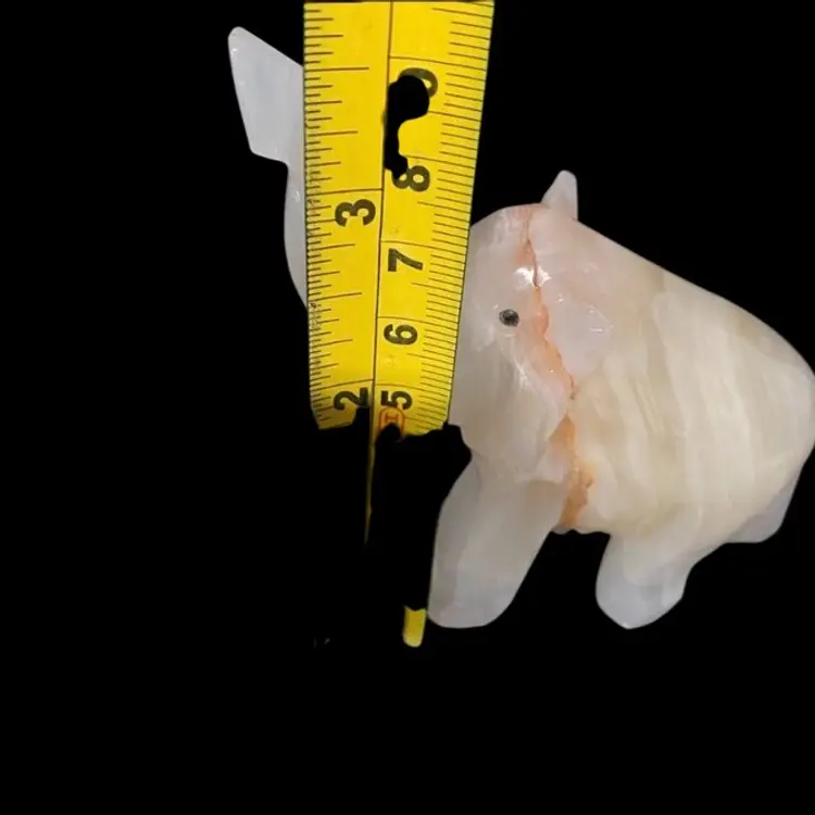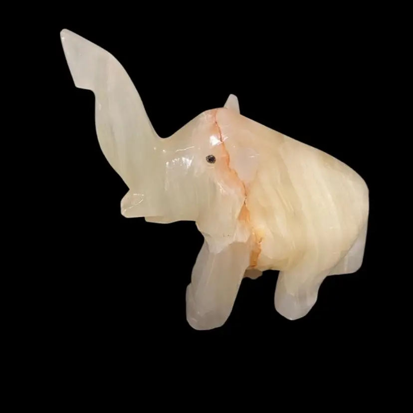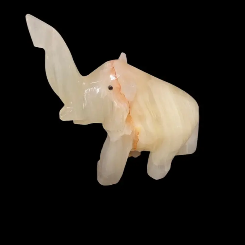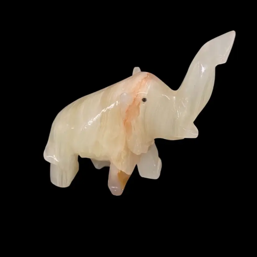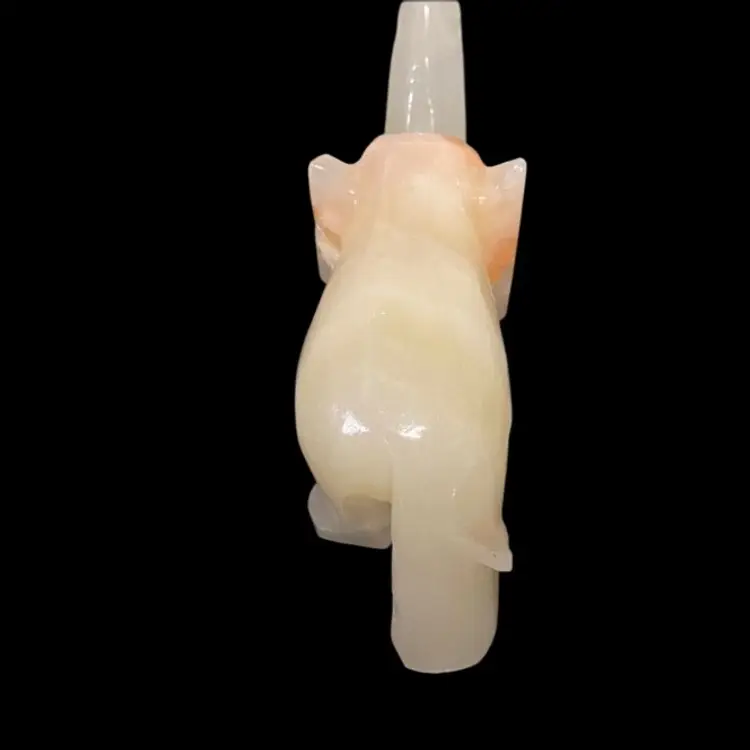 White Onyx Quarts Vintage Hand Carved Elephant Trunk UpFor Good Luck