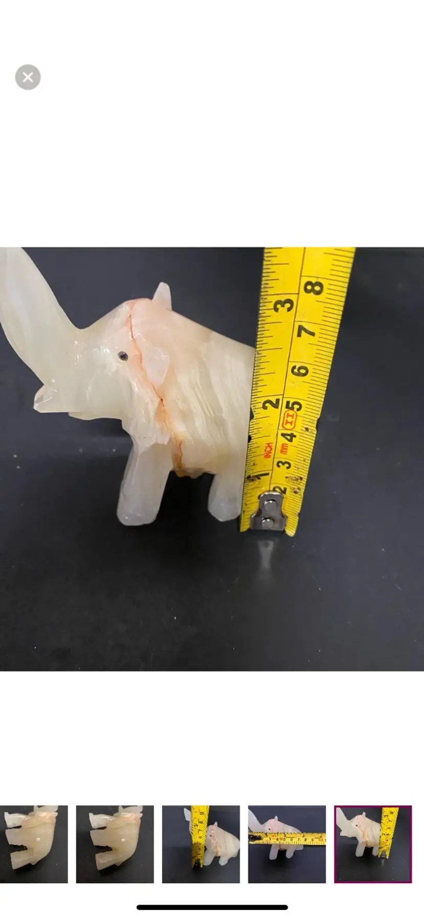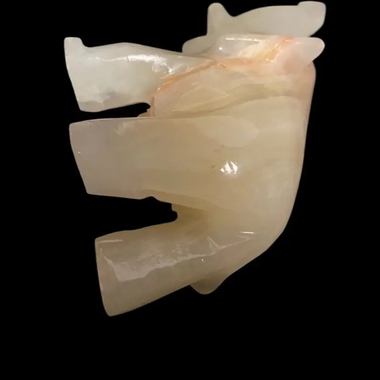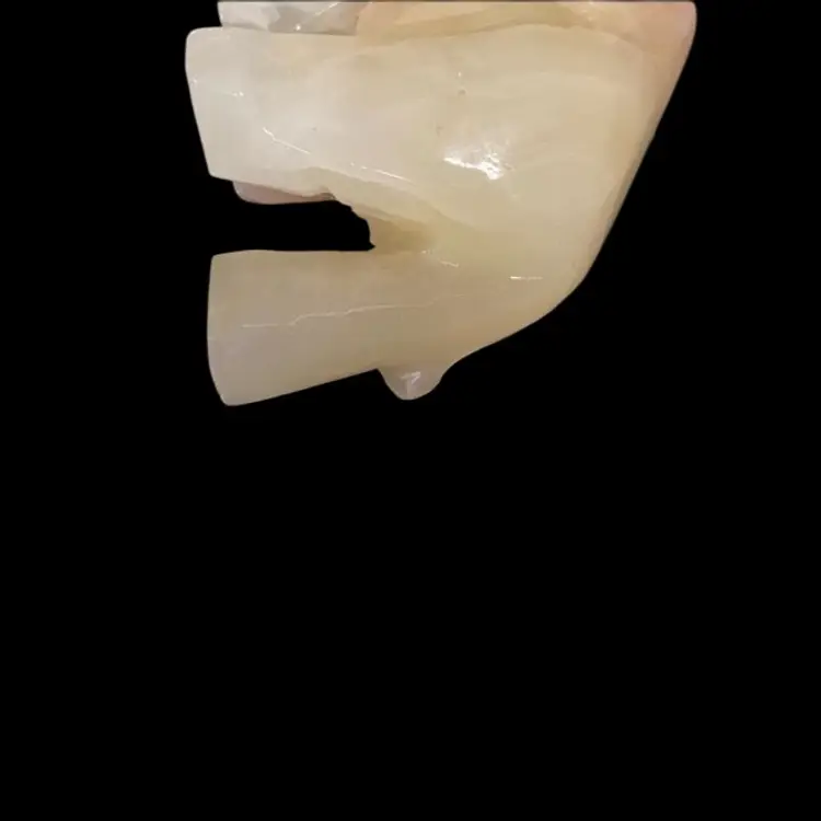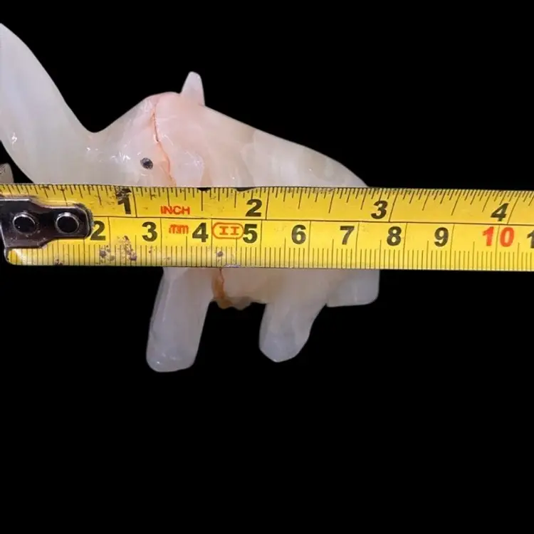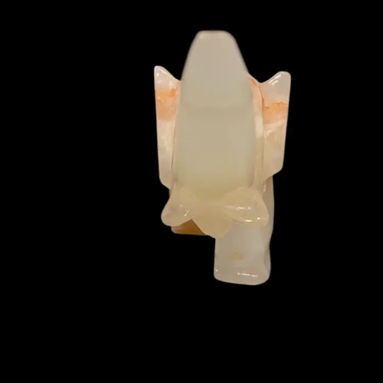 White Onyx Quarts Vintage Hand Carved Elephant Trunk UpFor Good Luck