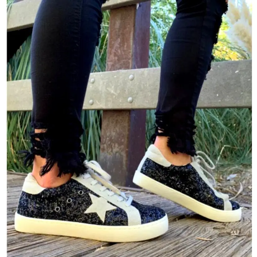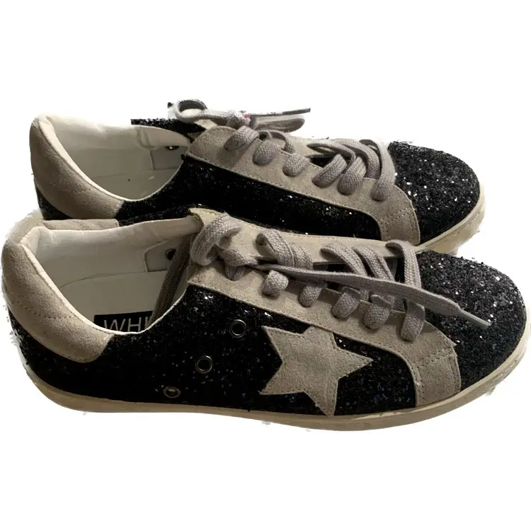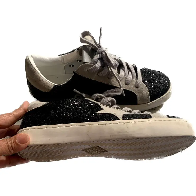 UK Shoe Size: 6.5 Shoe Shaft Style: Low Top Pattern: star Closure: Lace Up Occasion: Activewear, Casual, Workwear US Shoe Size: 6.5 Color: Black Accents: Glitter Vintage: No Brand: White raven Type: Athletic Department: Women Customized: No Style: Sneaker Shoe Width: Standard Season: Fall, Spring, Summer, Winter Country/Region of Manufacture: China