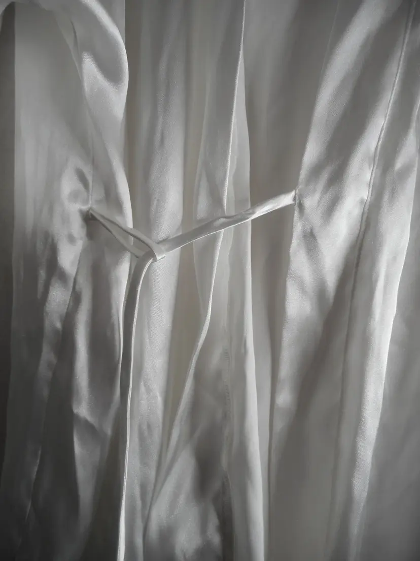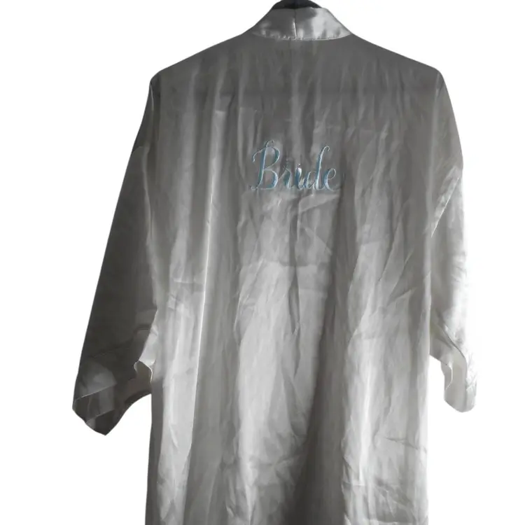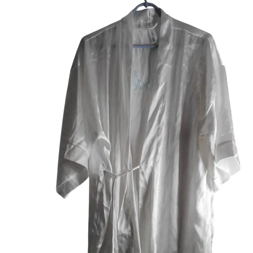 White Satiny Bride Robe Lingerie Sz M/L tie close