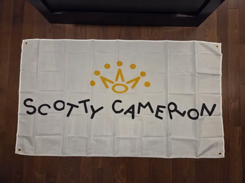 This listing is for one white Scotty Cameron dancing scotty banner. It is approximately 3'x5' in size.