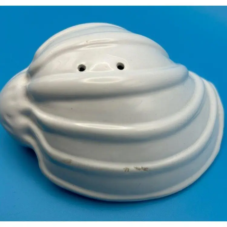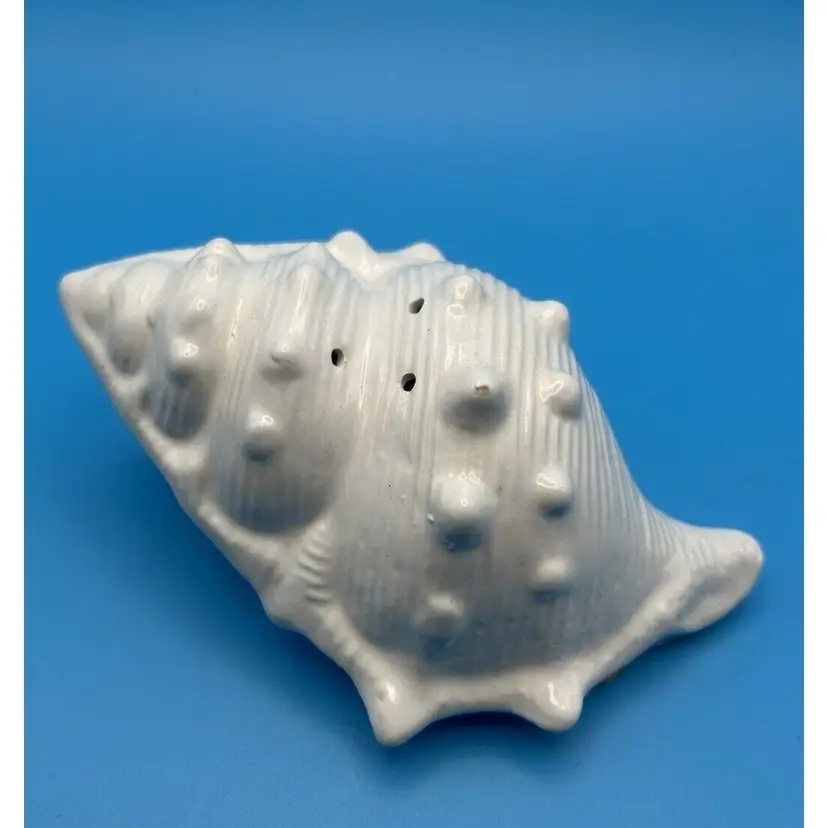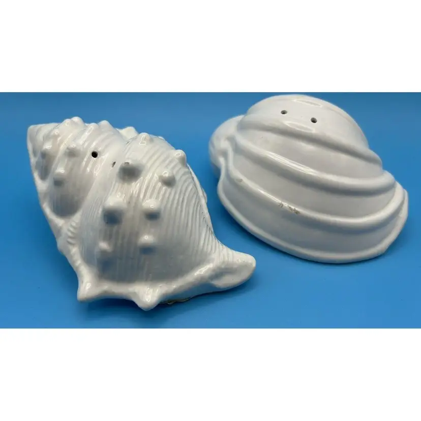 White Sea Shell Salt & Pepper Shakers Beach House. Approximately 5l x 2.5h x 2.75w