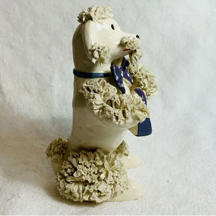 The blue hand bag appears to have some flea bites on the edges. They make the purse look well used so at first I thought it might be part of the design. As I place finger over the area it does feel like there is no glaze over those specific spots. Please review photos. She or he is a beauty otherwise