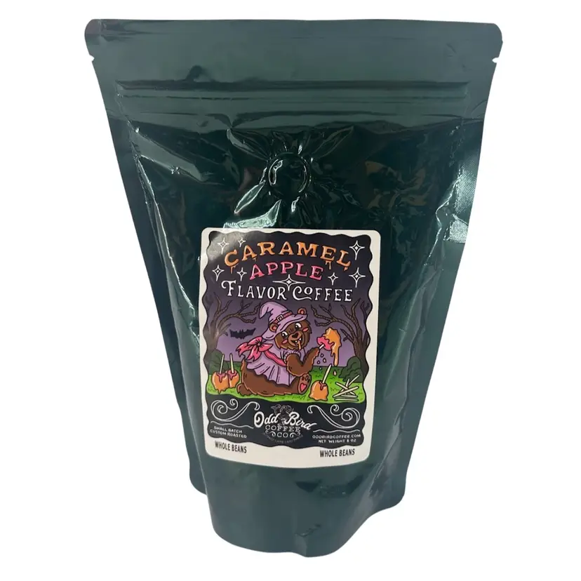This WHOLE BEAN coffee is caramel apple flavored. It is a medium roast and comes in an 8oz bag. Get it before it’s gone for good!