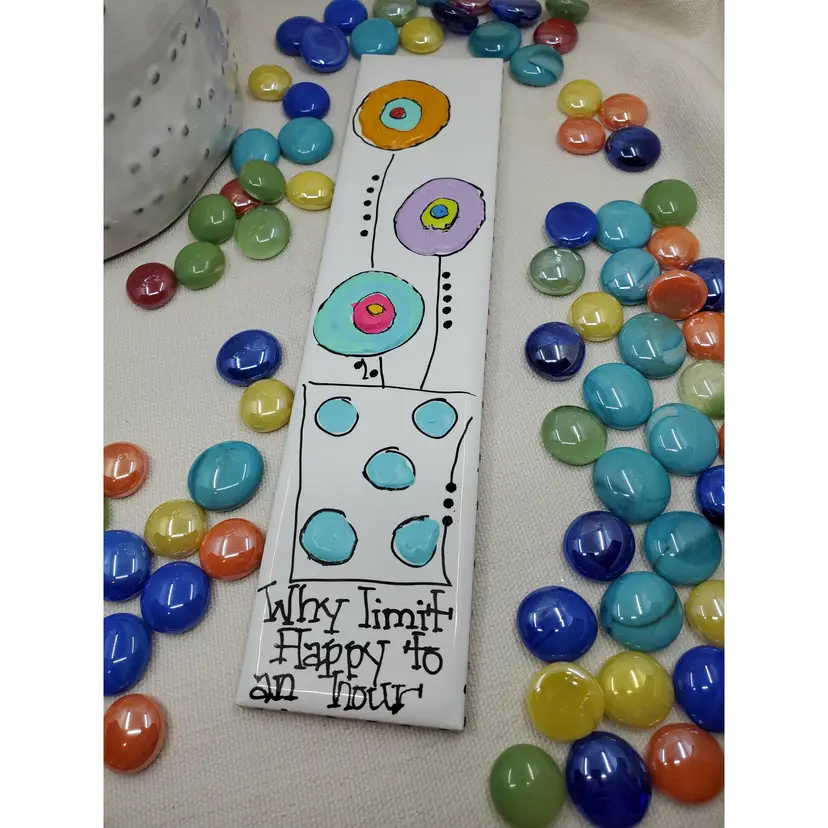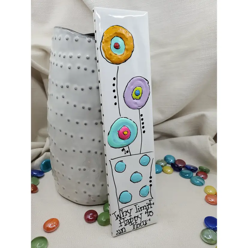 Whimsical Handpainted Flowers On Italian Tile 2.25" X 9.75" Ready To Hang Signed By Artist