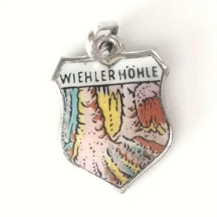 Wiehler Hoyle Germany Vintage Enamel Souvenir Travel Shield Bracelet Charm - 800 Silver