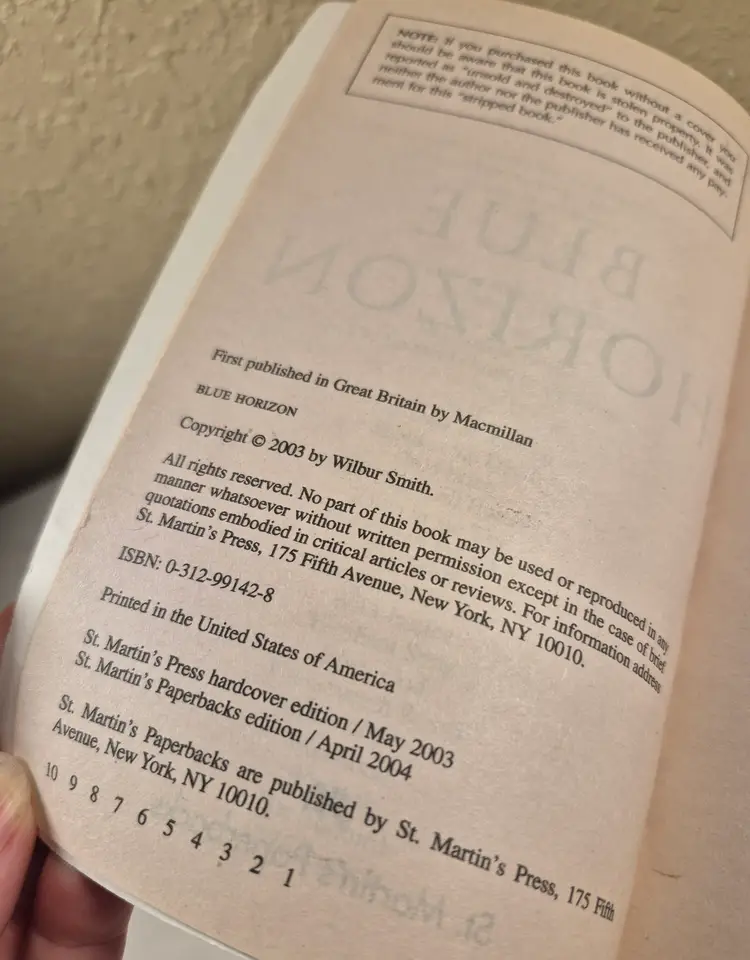 Wilbur Smith Blue Horizon Paperback Book Good condition Comes from a clean and smoke free environment