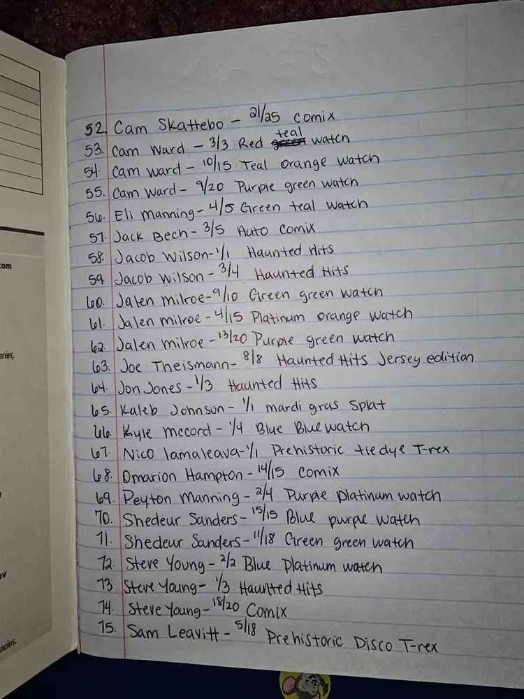 Have 84 cards mostly qb1s but a mix of splat, haunted,prehistoric, and comix as well. 1 sugar skull, a few autos, loads of 1/1s. Have this priced at $5 per card opened to offers just trying to get rid of some extra cards! Thanks for looking! *List is missing 6 more qb1s containing an peyton manning 1/1.