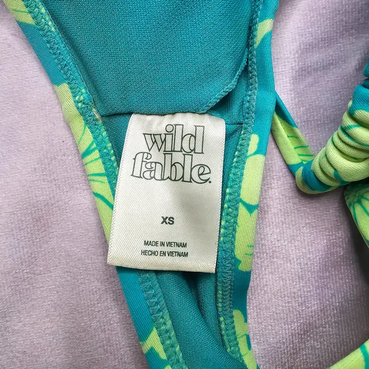 Halter style, string tie back, bead, padded, blue green tropical flower print SKU: 00227 ⭐️Pre-owned items may have minor or major defects. Smoke-free and Pet-free. The product shown is the exact item you will receive. Please note that colors may appear slightly different due to variations in device resolutions.