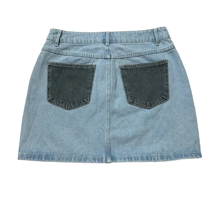 Wild Fable Denim Mini Skirt Patchwork Size 10 Retro Fun Boho Excellent condition 100% cotton Festival, casual, mini skirt, short Waist: 30 inches Length: 15.5 inches