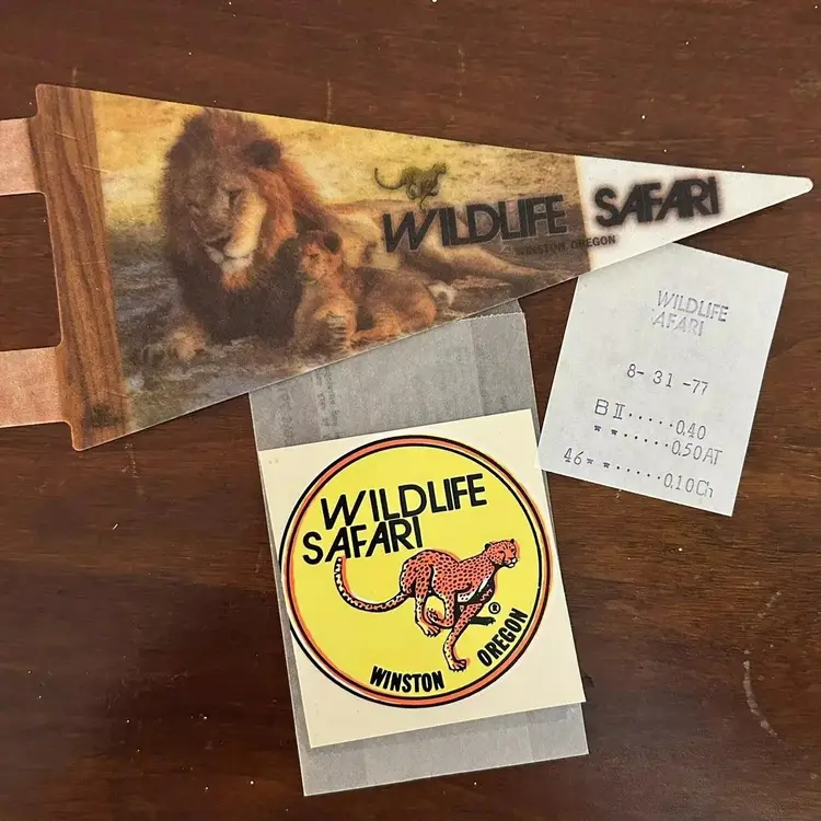 Wild Life Safari Winston Oregon Vintage Ephemera Pennant & Sticker 1970s