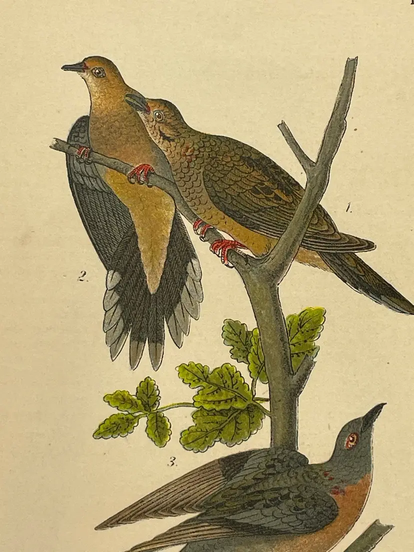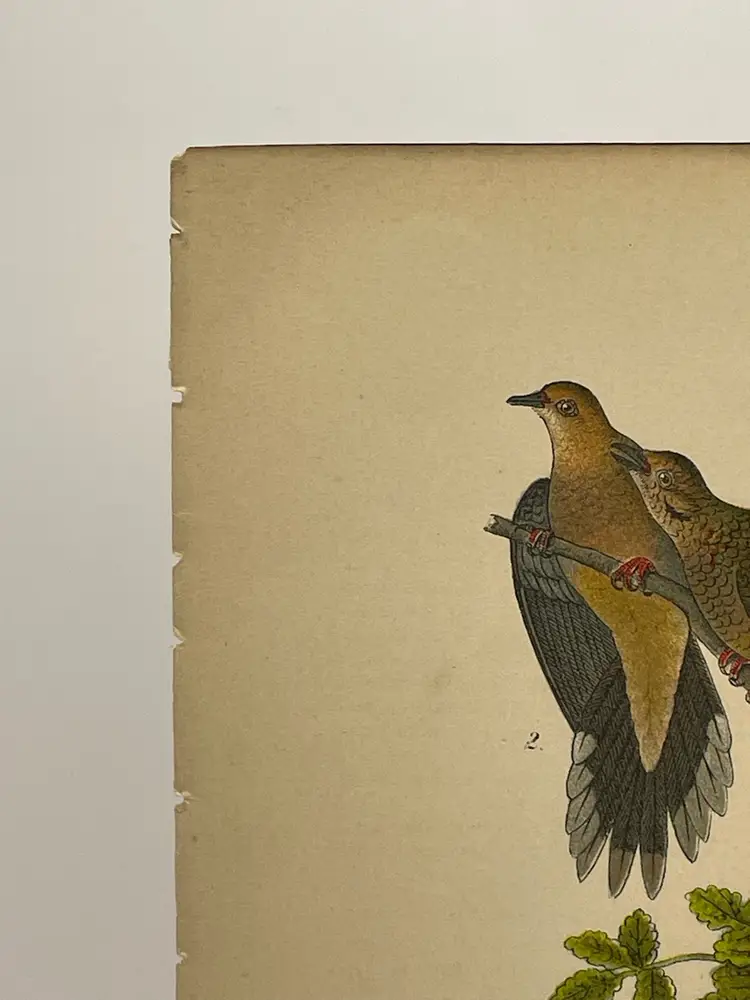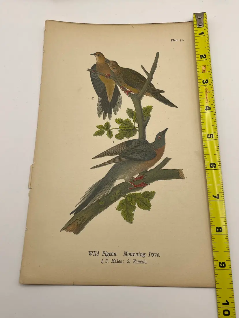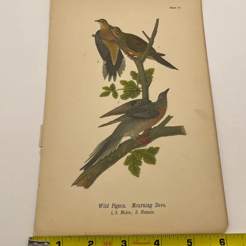 Wild Pigeon/Mourning Dove Bird c. 1890 Color Plate Engraving 71, From an Antique Book (6” X 9.5”) Please see measurements in pictures.