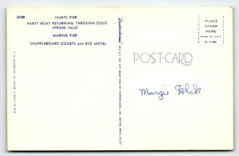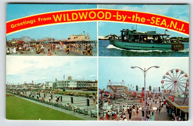 Number of Items in Set: 1 Unit of Sale: Single Unit Artist: Unknown Occasion: Vacation Size: Standard (5.5 x 3.5 in) Signed: No Custom Bundle: No Material: Paper Year Manufactured: 1967 City: Wildwood Original/Licensed Reprint: Original Brand/Publisher: Tichnor Brothers Subject: Wildwood By The Sea Continent: North America Type: Printed (Lithograph) Era: Photochrome (1939-Now) Region: New Jersey Country: USA Theme: Aerial View, Architecture, Cities & Towns, Community Life, People, Tourism, Travel, Boardwalk, Rides, Amusements, Amusement Rides, Shuffleboard Court, Rio Motel, Party Boat, Ferris Wheel, Roller Coaster Features: Chrome Time Period Manufactured: 1960-1969 Country/Region of Manufacture: United States Postage Condition: Unposted