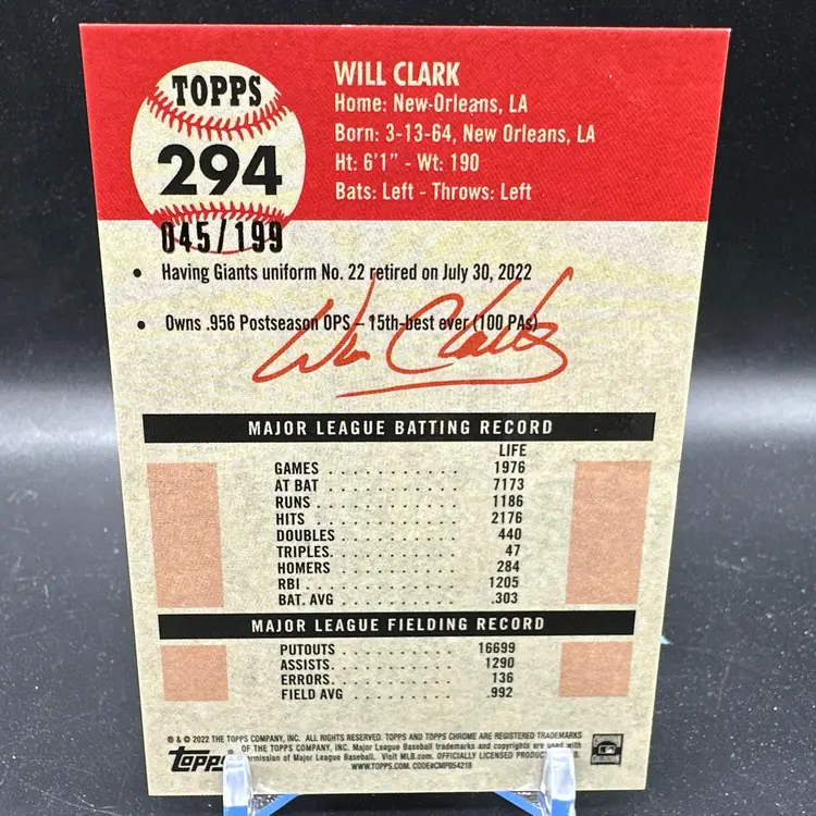 WILL CLARK BLUE TOILE /199 2022 Topps Chrome Platinum Anniversary SF GIANTS
