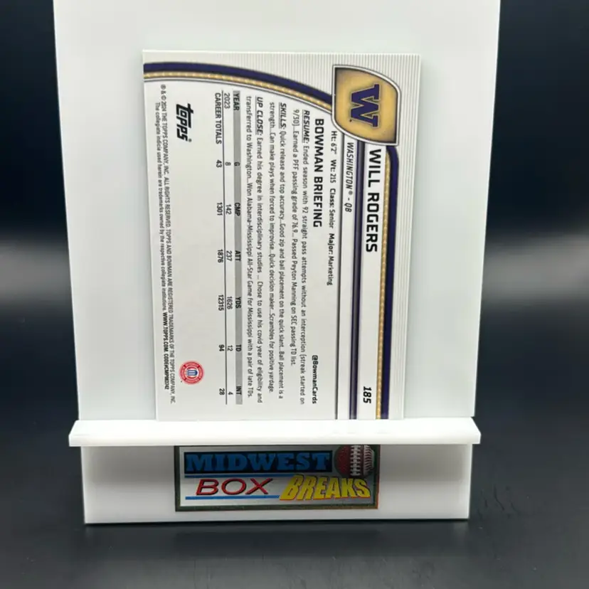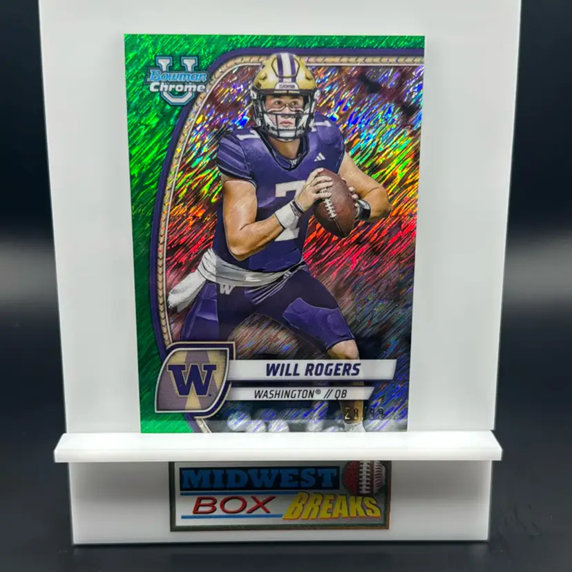 Will Rogers 28/99 Green Shimmer 2024 Bowman University Chrome Washington MBBCRD