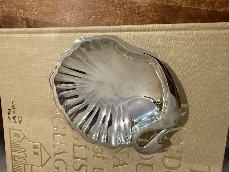 Vintage William. A. Rogers silver plate swan hostess dish, a charming and elegant piece for serving or display. This unique dish features a gracefully curved swan neck handle and a scalloped, shell-like bowl, making it a distinctive addition to any decor. Perfect for appetizers, candies, or accentuating your table setting, it's a timeless item that brings vintage appeal to any occasion. Excellent pre-owned condition with minor signs of age.