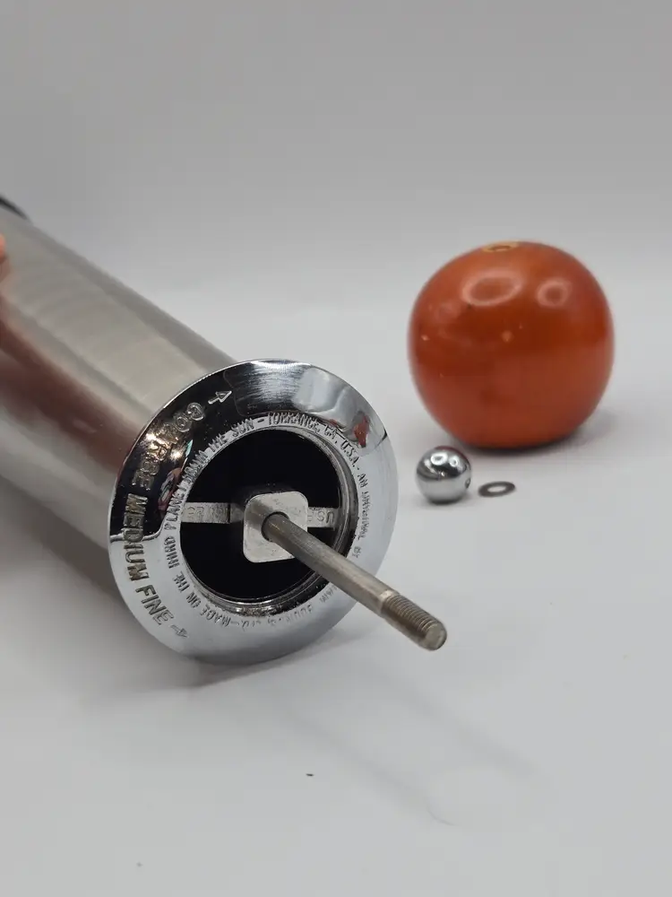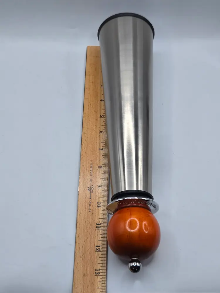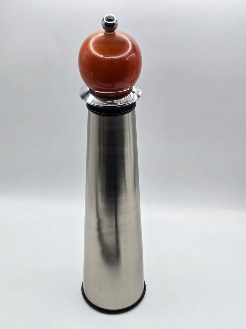 William Bounds Wooden Ball 12-1/2" Torch Pepper Mill • 3 Setting Grind • USA Retail $50.00+ Approx 12.5" H X 3" at base Very good age appropriate condition. Everything moves and cranks as designed. Had not been polished. No chips, cracks, or breaks. Areas of minimal wear are possible due to age, handling, and storage. See pictures.