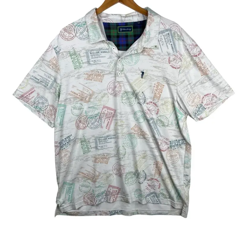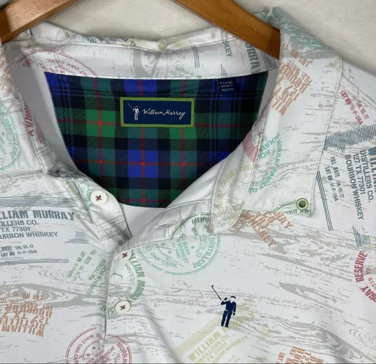 William Murray White Bourbon Whiskey Distillery Short Sleeve Polo Golf Shirt-XL good conditon, normal signs of wear, no visible signs of flaws. Flat lay measurements are all approx: X-Large Chest: 23” Shoulder to hem: 28”