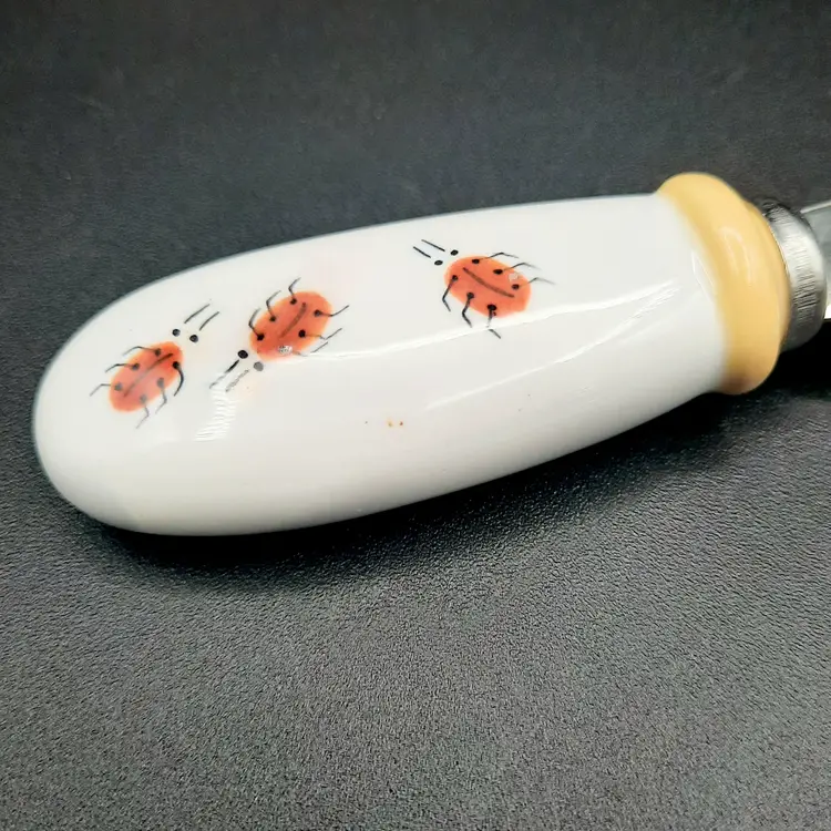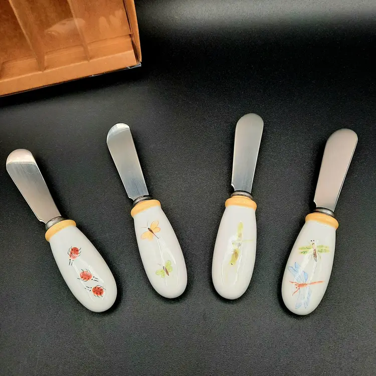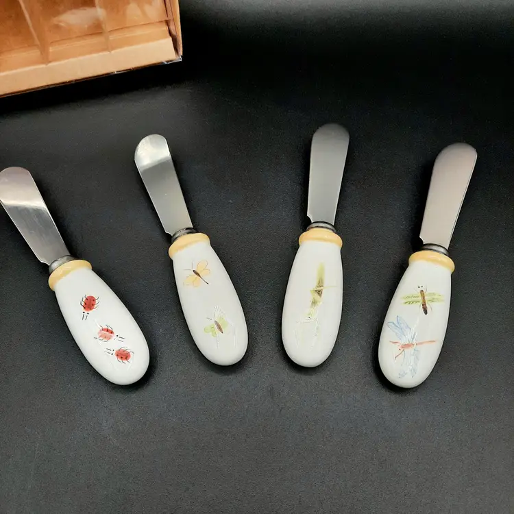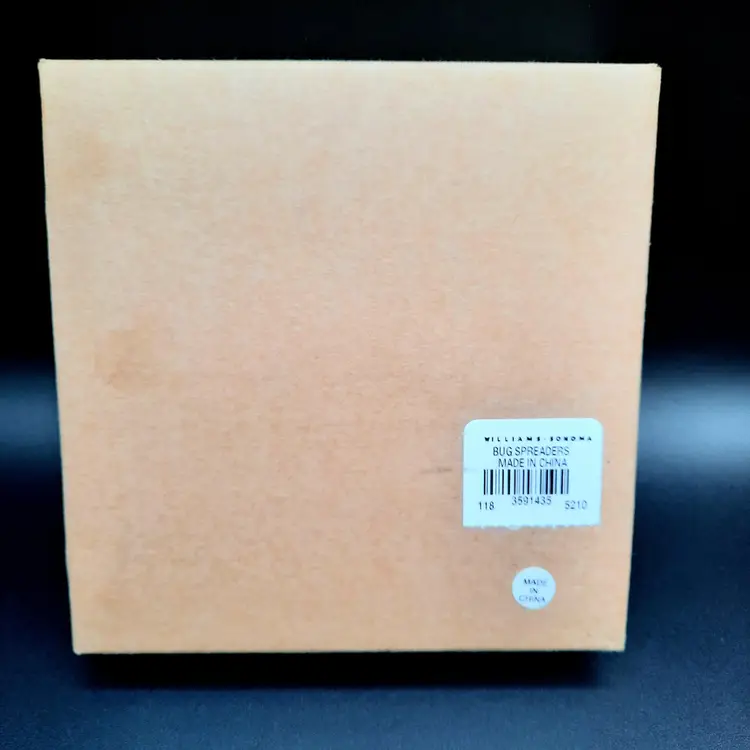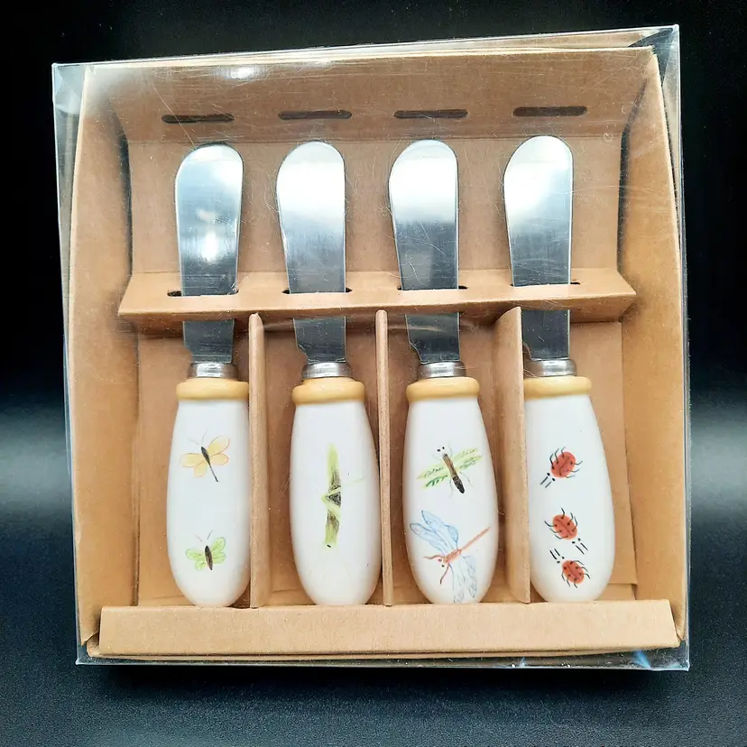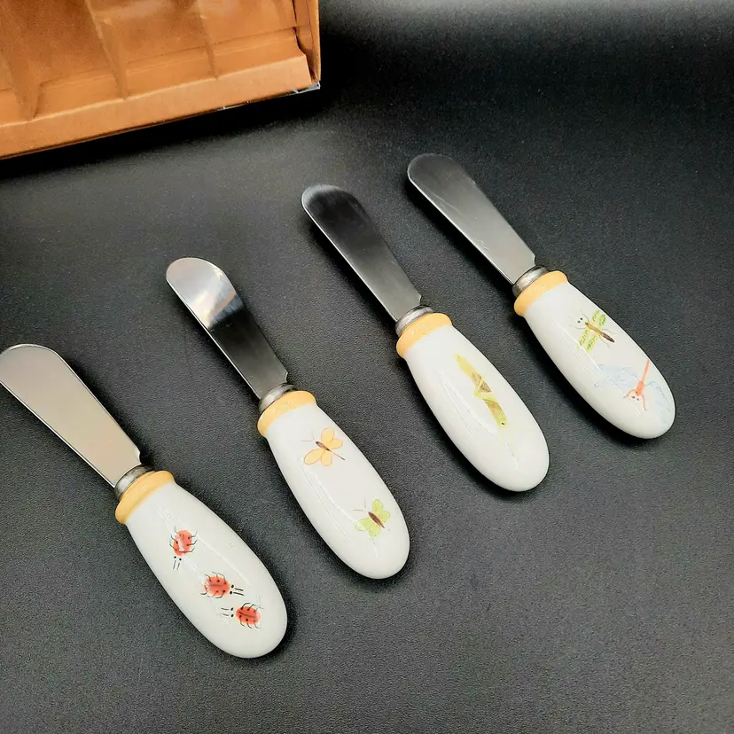 Some light specks of paint in ladybug spreader and small chip in rim of butterfly spreader, original box has some light wear