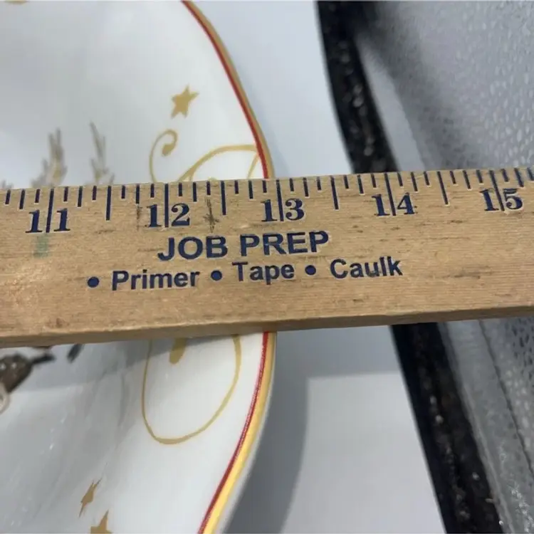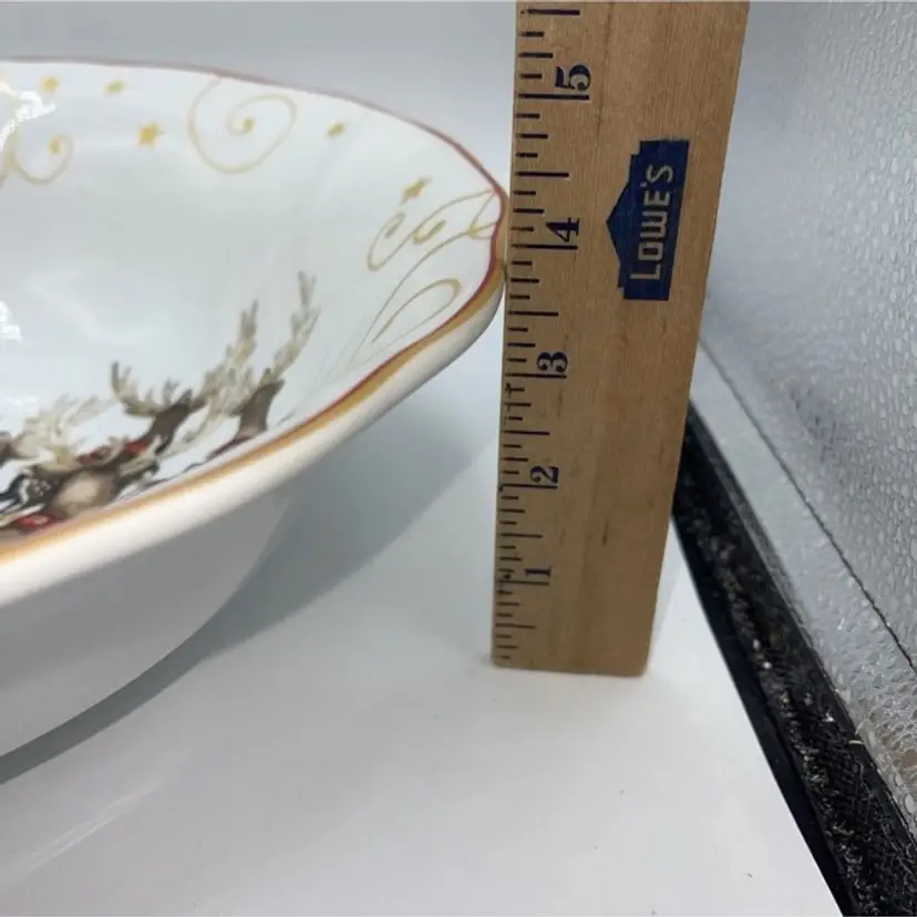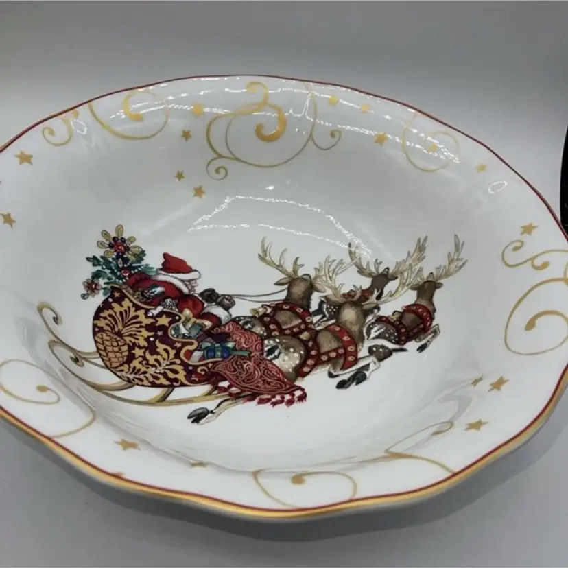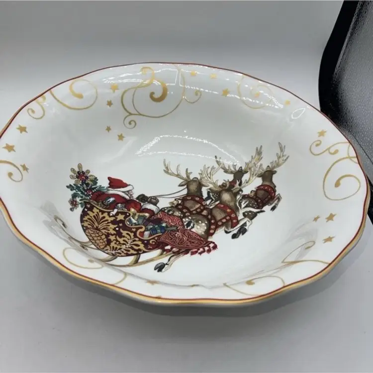 This beautiful bowl by William Sonoma is part of the Twas the night before Christmas collection. This is Santas sleigh. It measures 13 inches across and approximately 4 inches deep.