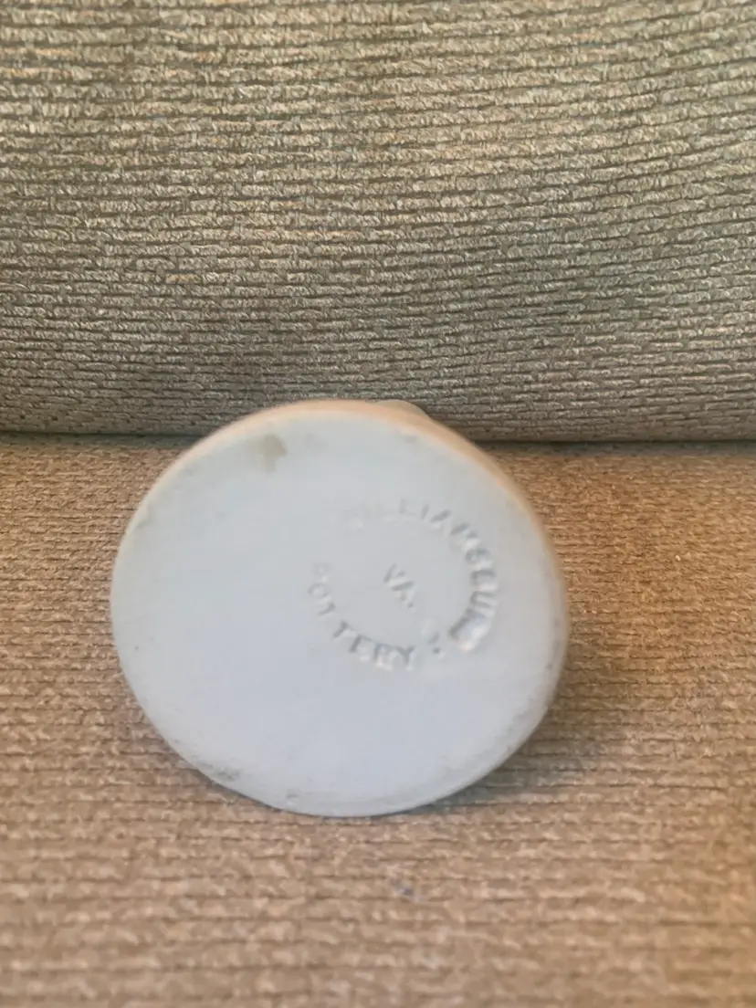 No chips or cracks. Williamsburg Pottery. 2 1/4 x 3 1/4 inches.