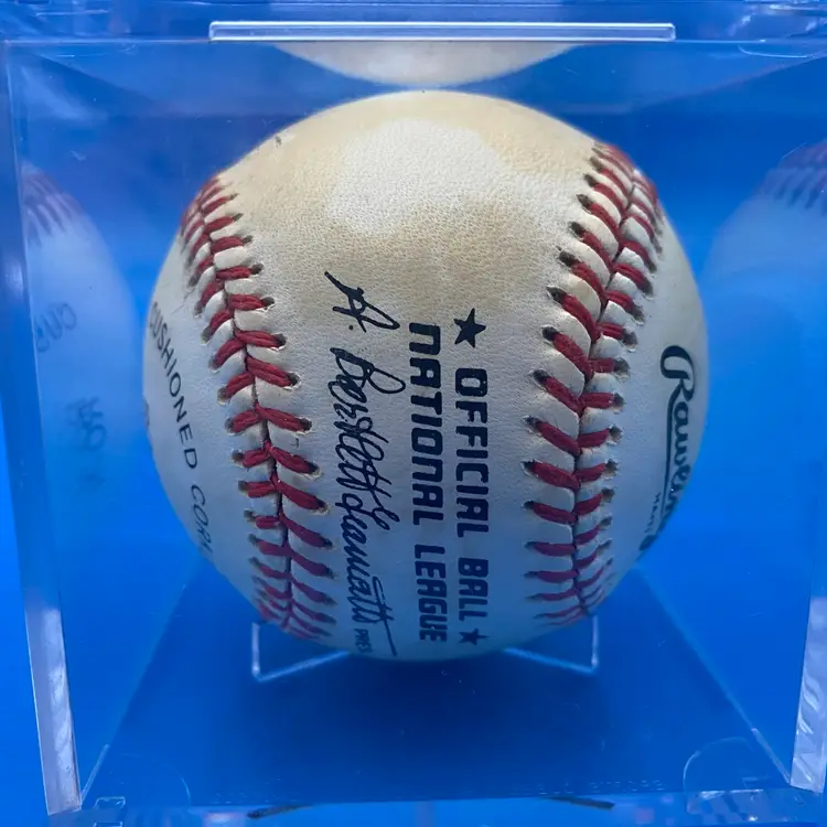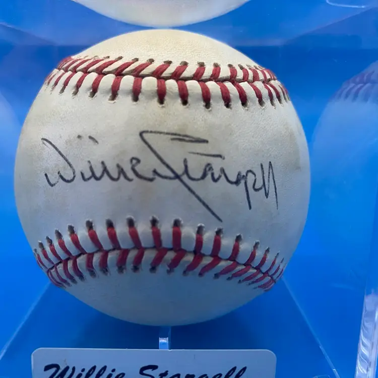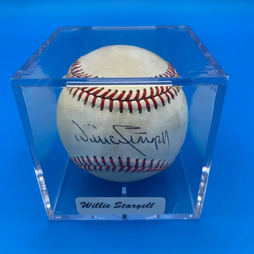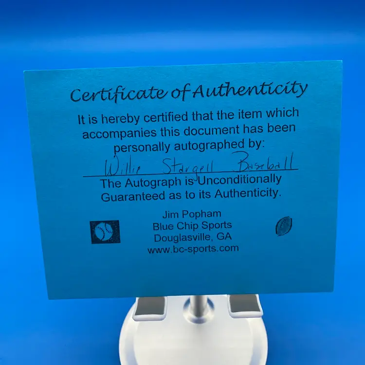 You are purchasing one Willie Stargell Signed Rawlings Official National League Baseball. This ball includes one hard plastic display case and one certificate of authenticity by Blue Chip Sports. This Baseball is in in overall good condition. See images for a closer look at each angle, including area of discoloration throughout. No chips or cracks in the case. No rips on the certificate.