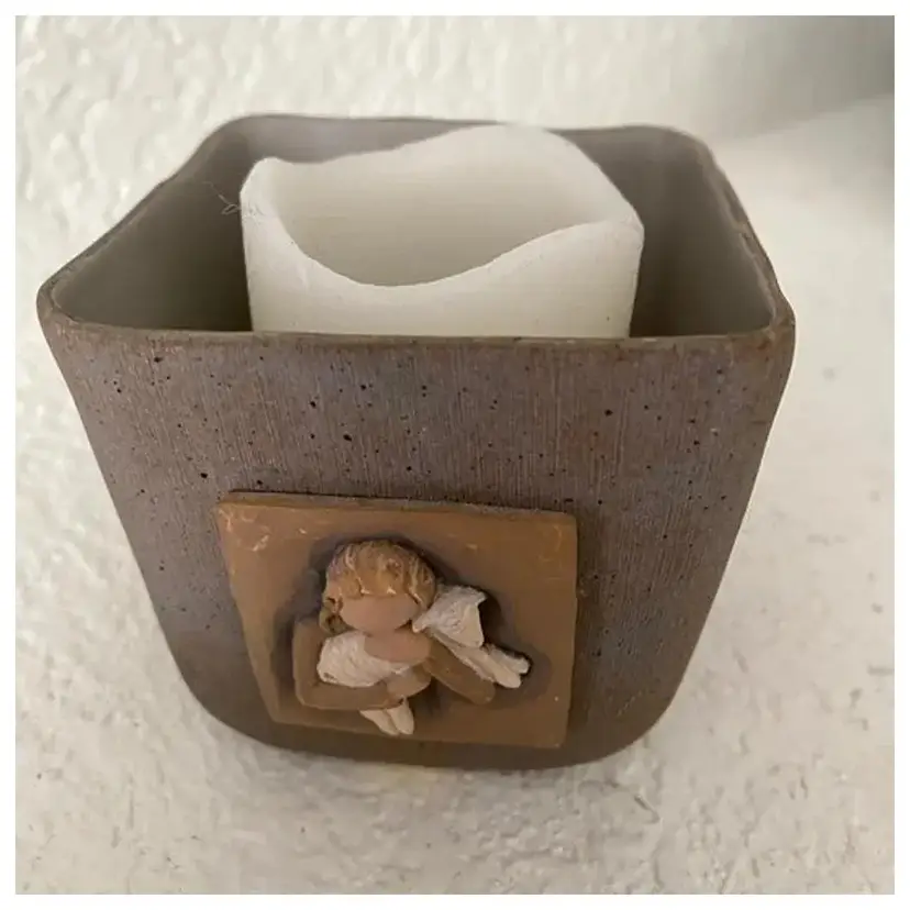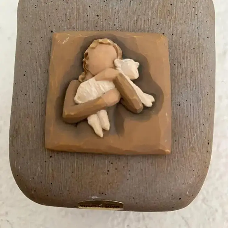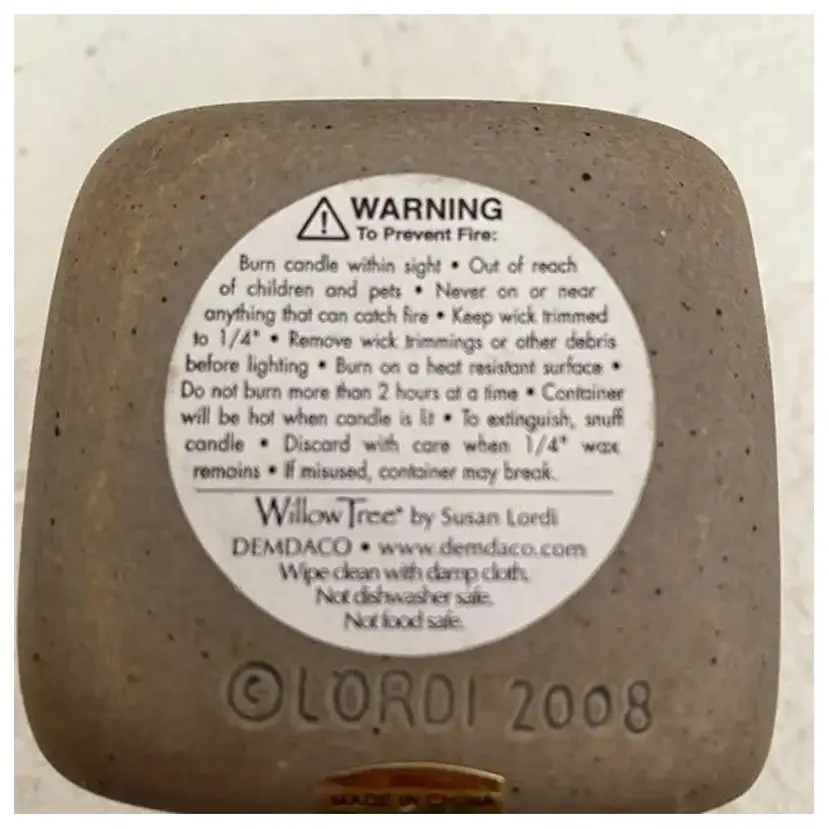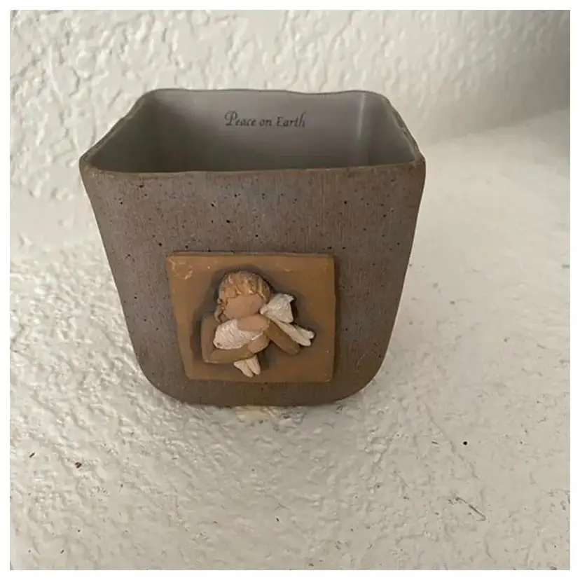 Porcelain tealight or votive holder. (2 7/8 inch wide, 3 inch high). "Peace on Earth" by Susan Lordi for Willow Tree/Demadco. Textured/Embossed/Engraved Girl holding white Lamb. Bonus candle included. Excellent used condition, labels still attached. Engraved on bottom "LORDI 2008". NO box.