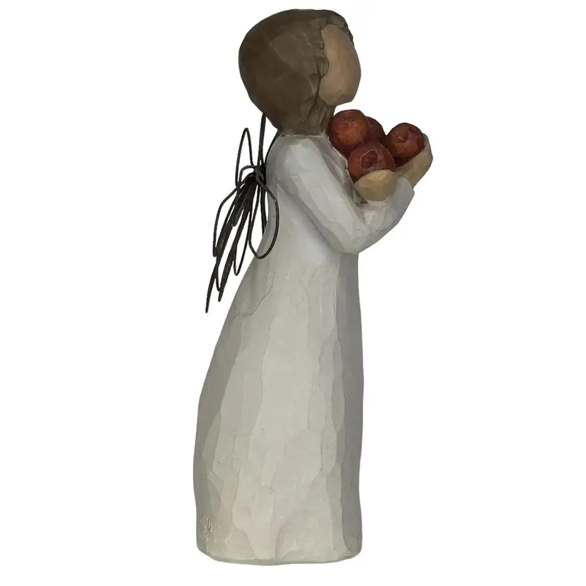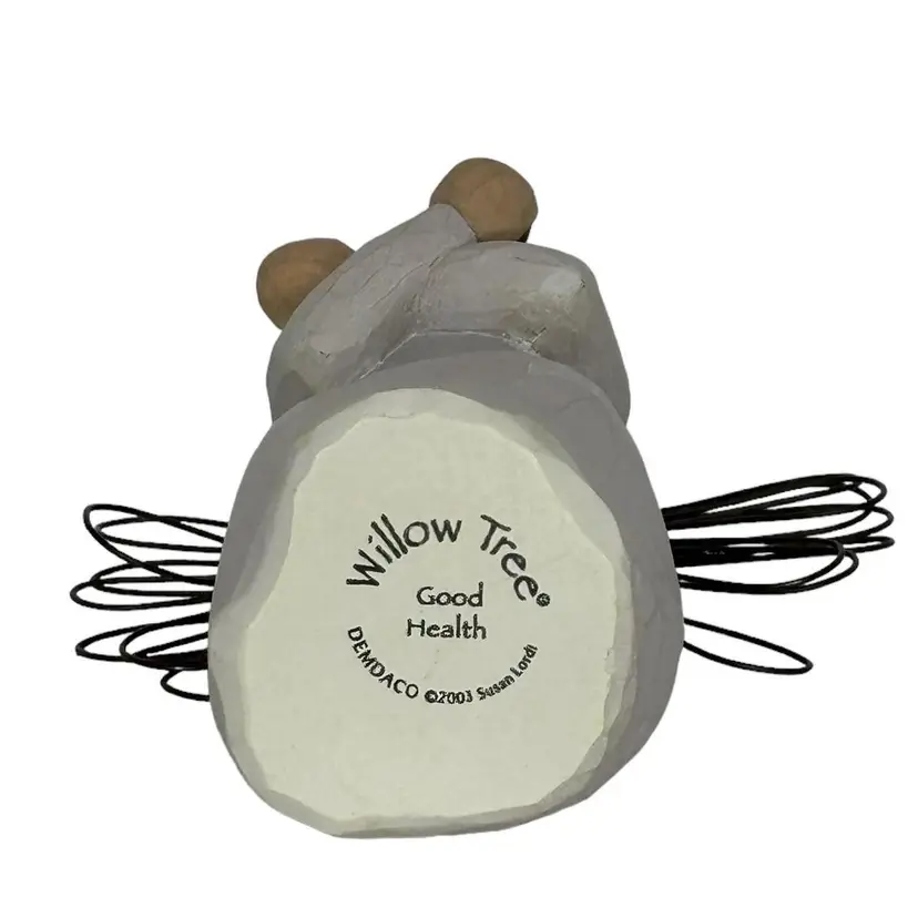 This beautiful Willow Tree figurine measures approximately 3 1/2" L x 1 5/8" W x 5 3/8" H. It is an angel holding apples representing Good Health. It is signed Lordi on the side and marked on the bottom. It is dated 2003. Please see photos and feel free to contact me with any questions. Thank you.
