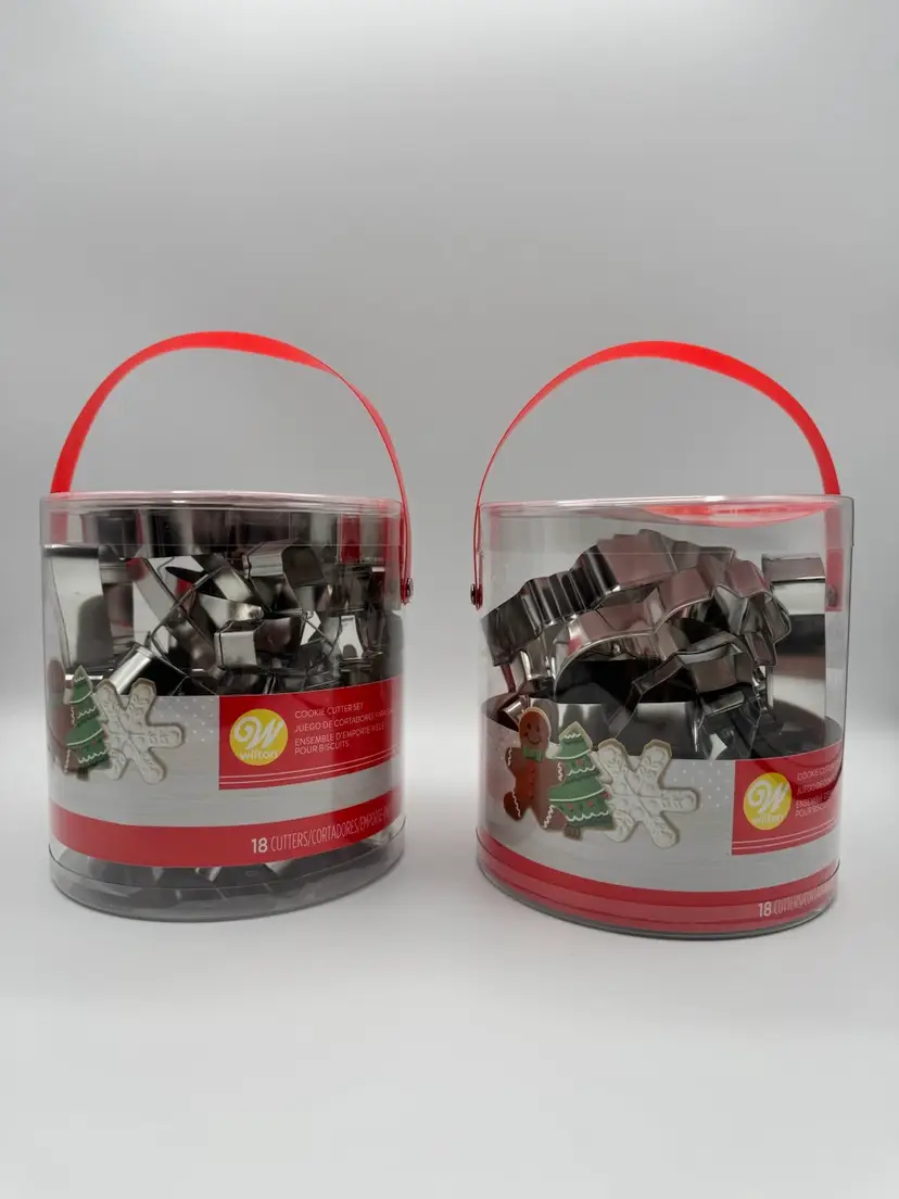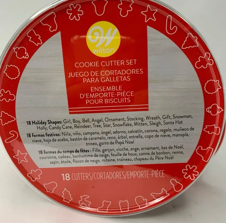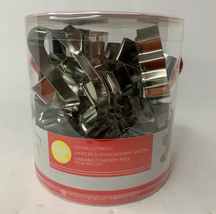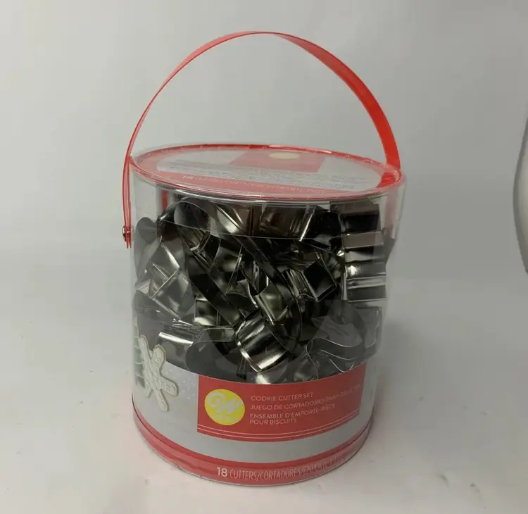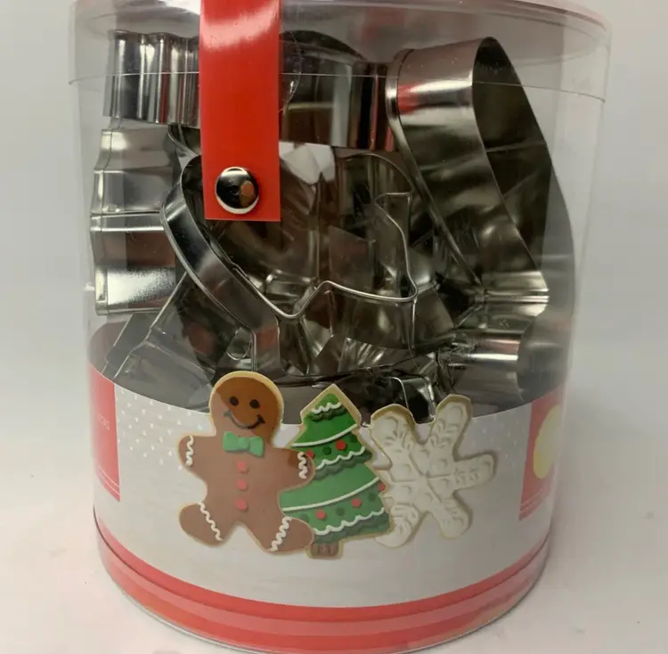 Condition: New in container with handle, never been opened. Please see all pictures as they are part of the description. Features: • Get into the Holiday spirit with these cookies cutters. • You can also use to make ornaments out of clay. • Assorted Cookie Cutters. • 18 Different Shapes. • Shapes: Angel, Bell, Candy Cane, Gift, Gingerbread Boy & Girl, Holly Leaf, Mitten, Ornament, Reindeer, Santa Hat, Sleigh, Snowflake, Snowman, Star, Stocking, Tree, Wreath • Christmas • Made in China • Dishwasher safe for easy cleaning. Measurements are Apx: Variety of sizes 3-4 in x 3-4 in Weight: 10.3 oz