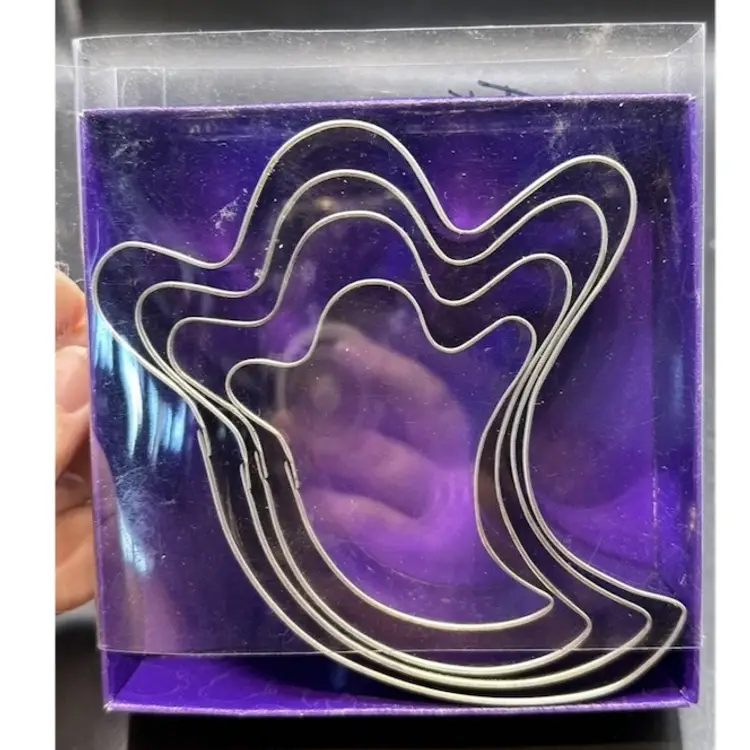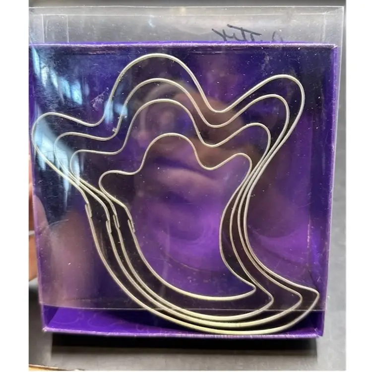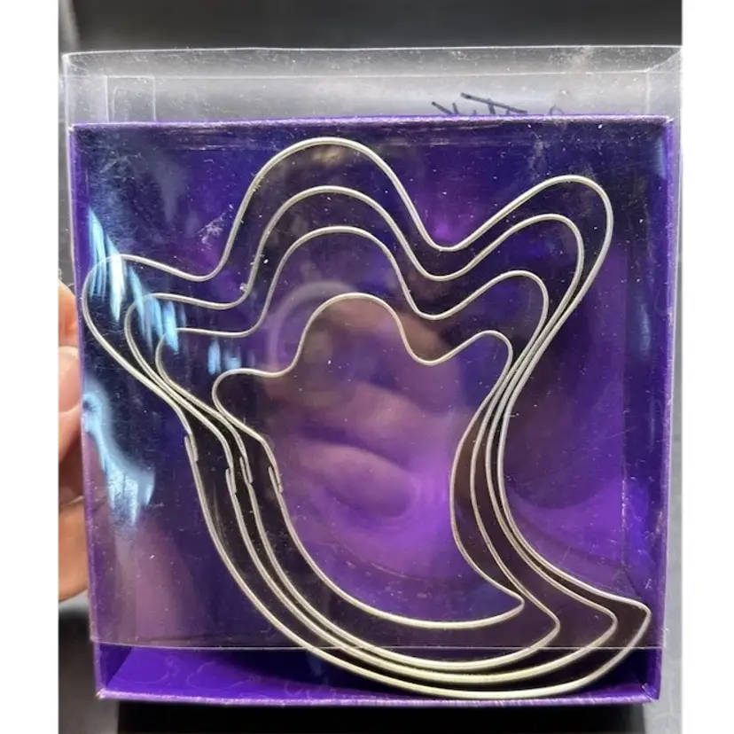 Add some spooky fun to your baking with this set of four Wilton Metal Cookie Cutters. The nesting set features four different ghostly shapes, perfect for Halloween-themed treats. Each cutter is made of durable metal, ensuring they will last for many baking adventures. The silver color adds a touch of elegance to your baking tools and the set comes with four cutters, making it ideal for creating a variety of cookie shapes. Get ready to impress your guests with these unique and fun cookie cutters!
