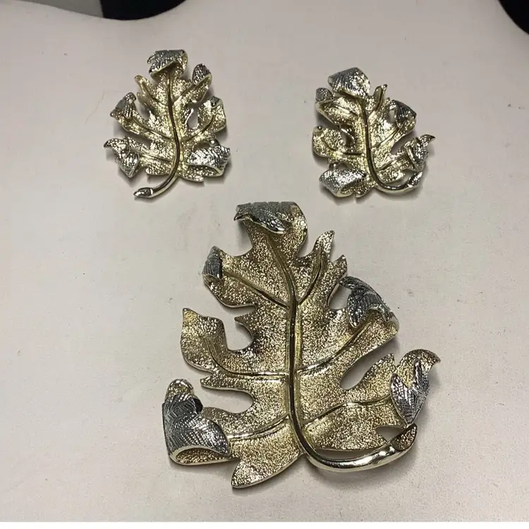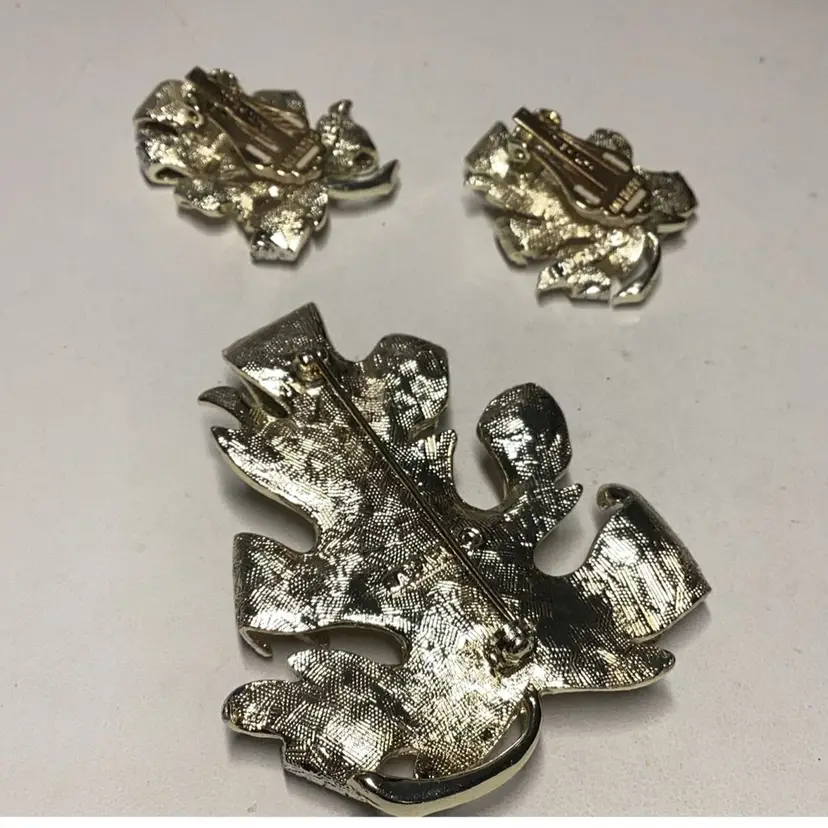 Windfall 1962 Leaf Brooch 2.5” & Clipon Earrings 1.5” Set - Sarah Coventry