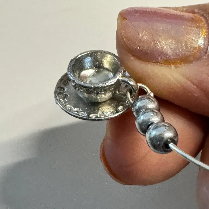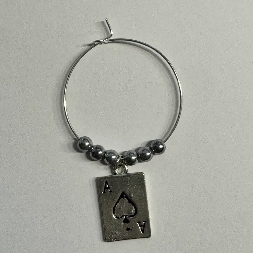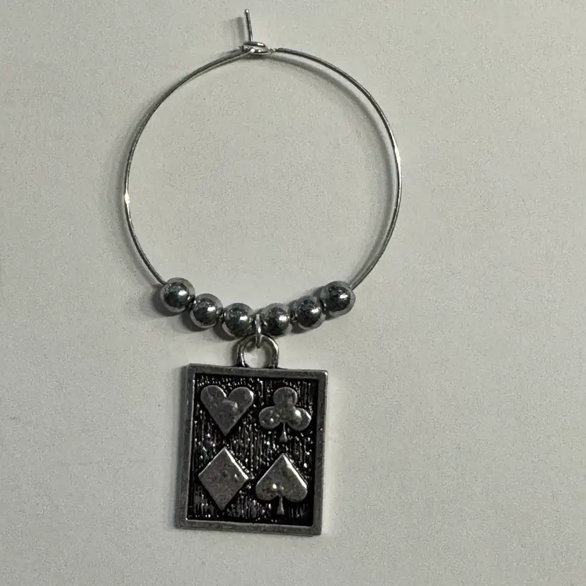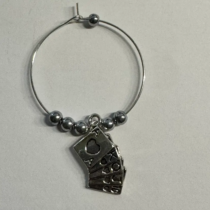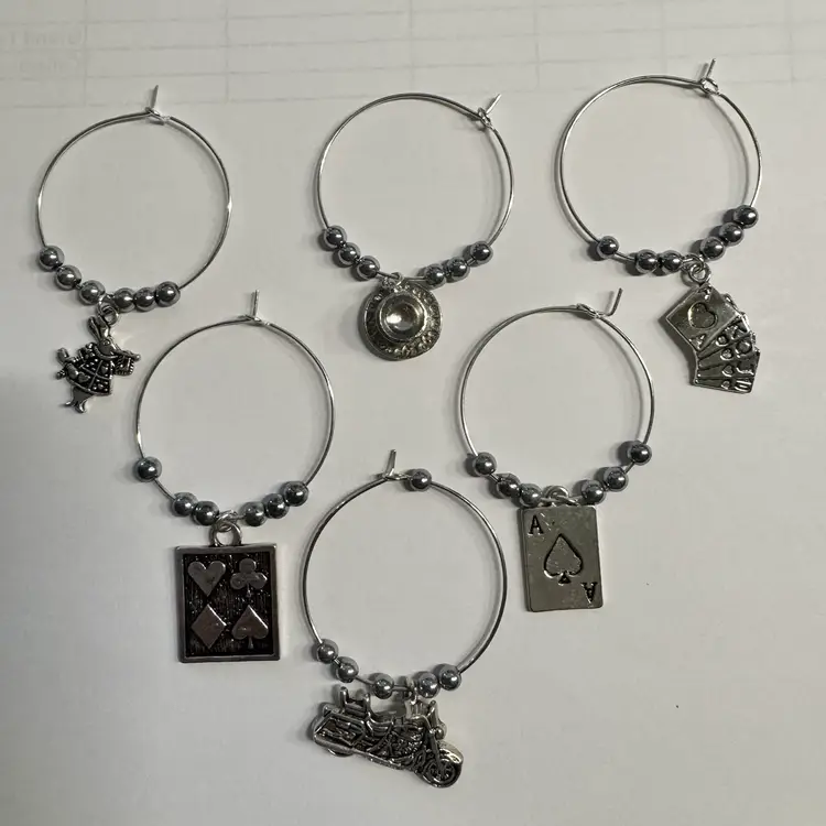 I put these together, 6 different charms, fun charms, with 6 silvertone beads. Rabbit Tea cup & saucer 5 card flush Ace card Charm with ♥️♠️♦️☘️ Motorcycle