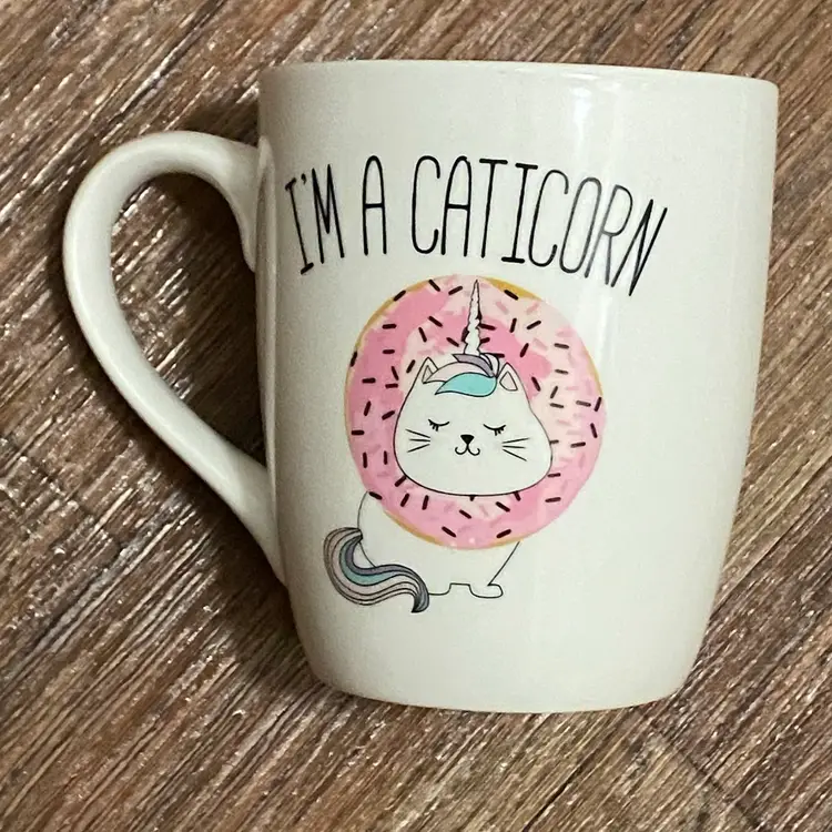 Winifred & Lily Ceramic Coffee Mug Cup I’m A Caticorn Cat Unicorn 4.5”H Kawaii Width diameter is 3.5 Very good condition with no chips, stains or damages #caticorn #cat #unicorn #kawaii #coffeemug