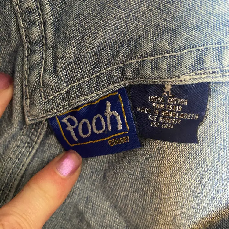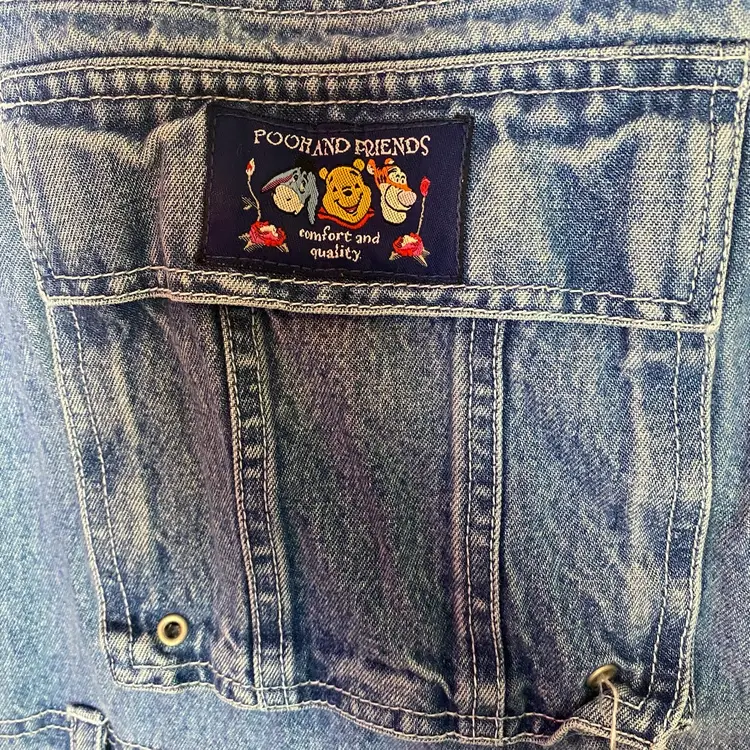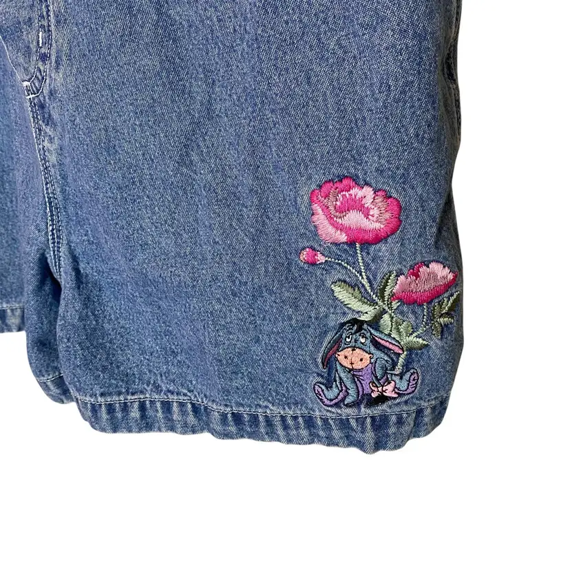 Winnie Pooh Denim Bib Overall Shorts Womens XL Embroidered Eeyore Y2K 90s Disney