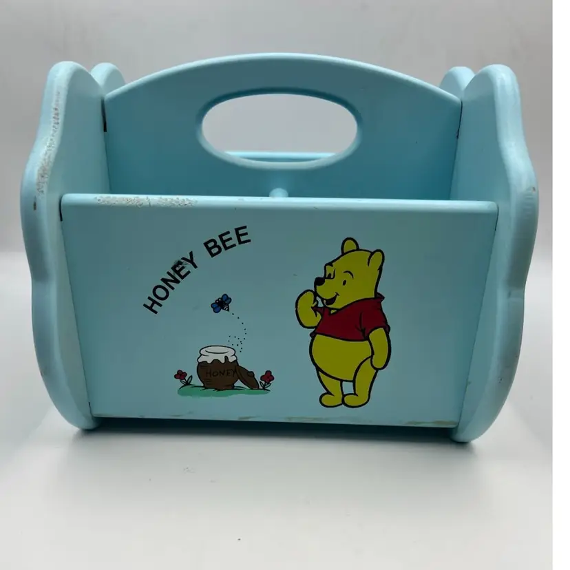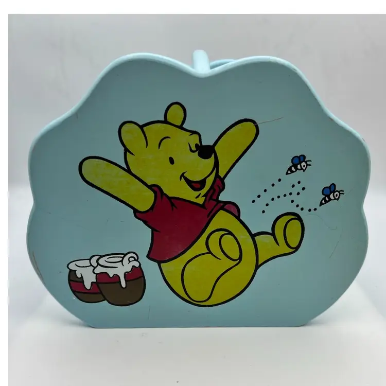 THIS IS A SWEET WINNIE THE POOH CONTAINER FOR HOLD DIFFERENT BABY THINGS. IT IS CUTE HAS SOME WEAR SEE PICTURES.