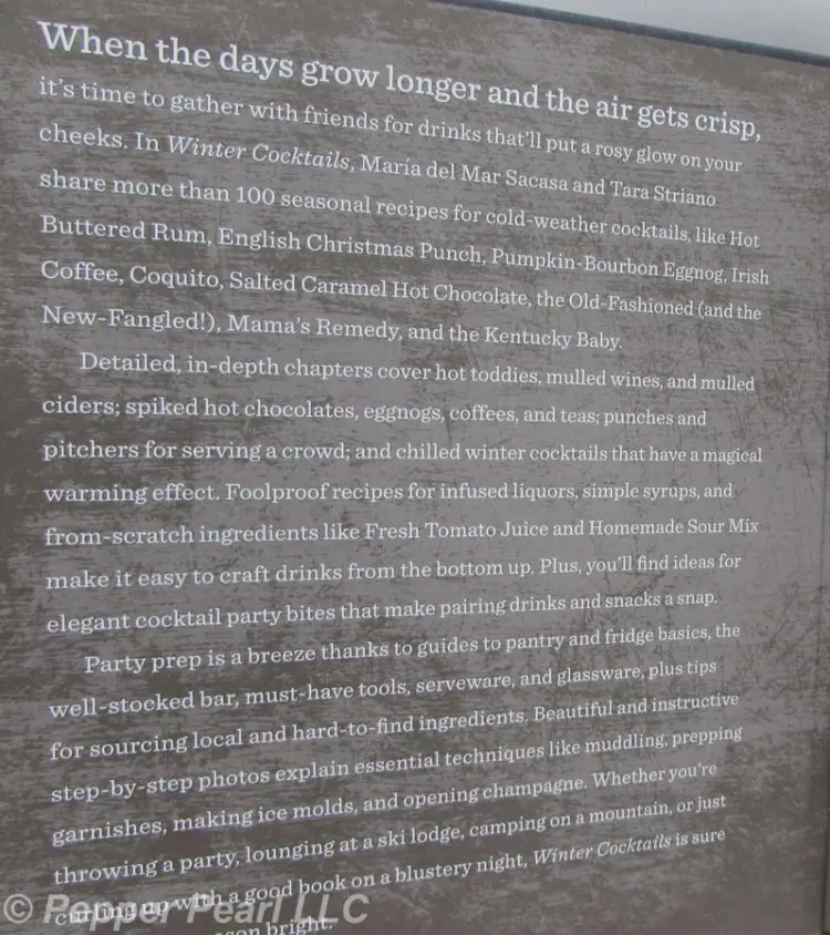NEW "Winter Cocktails: Mulled Ciders, Hot Toddies, and Cocktail Party Snacks" by Maria Del Mar Sacasa Hardback Book, about 10" tall ISBN 978-1-63059-843-3