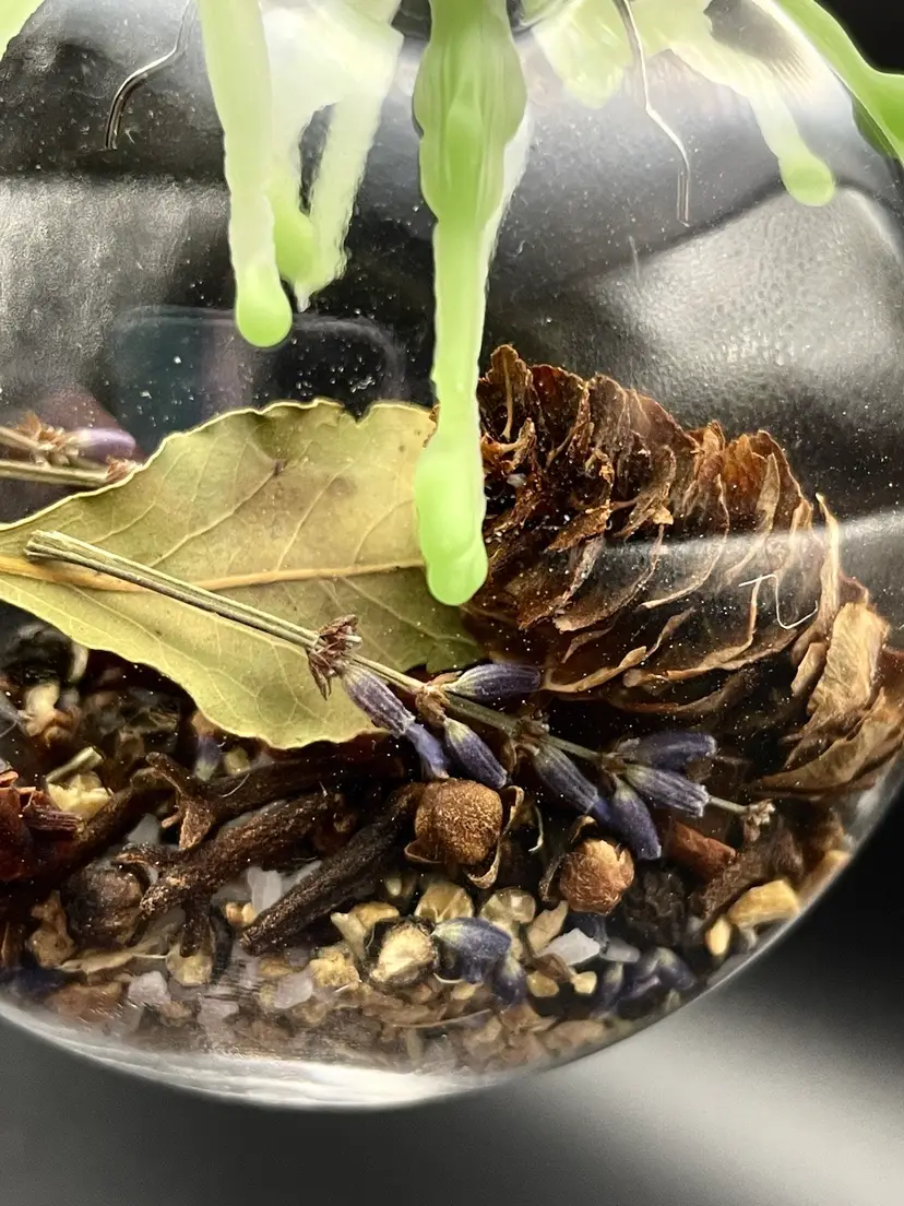 Blessing balls containing a mixture of herbs and natural elements to invite blessings of purification, health, prosperity and protection.
