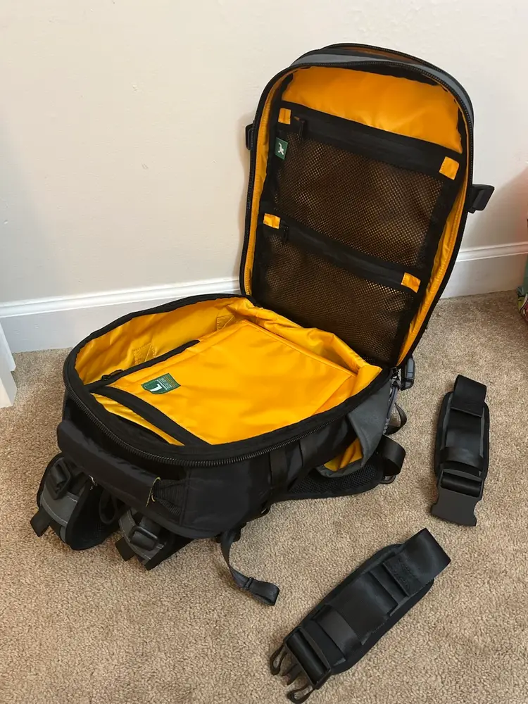 Straps & Belts Shoulder Strap Type: Quick Release Chest Belt: Fidlock Snap Magnetic Buckle Side Compression: 4x Fidlock 1" Slider Compression Belts Bottom Handle & Compression Belts: Included Removable Waist Belt: Full Waist Belt System Trolley Friendly: Yes