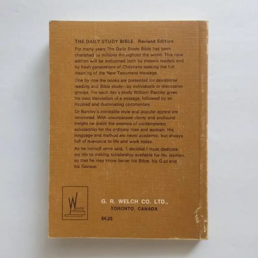 The "Wm. Barclay Revelation of John Volume 2 Chapters 6-22 Daily Study Bible" is a vintage paperback book measuring 4.75 x 6.6 x .5 inches. This revised edition, originally published in 1976, features a reinforced paperback cover and contains 232 pages of insightful commentary on the Book of Revelation by renowned author William Barclay. With a focus on spirituality, mysticism, and history, this book is suitable for all who are interested in religion and theology. An ideal addition to any collection, this English-language book provides a unique perspective on the Revelation of John, making it a valuable resource for those seeking spiritual enlightenment and understanding.